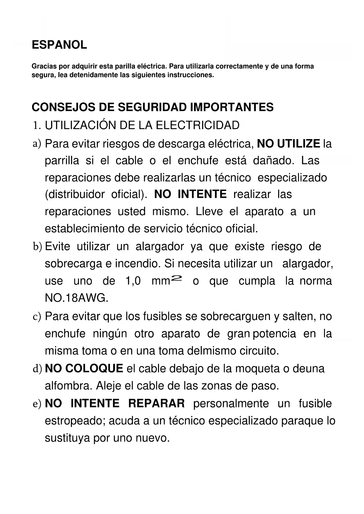 Para evitar riesgos de descarga eléctrica, NO UTILIZE la parrilla si el cable o el enchufe está dañado. Las reparaciones debe realizarlas un técnico especializado (distribuidor oficial). NO INTENTE realizar las reparaciones usted mismo. Lleve el aparato a un establecimiento de servicio técnico oficial.