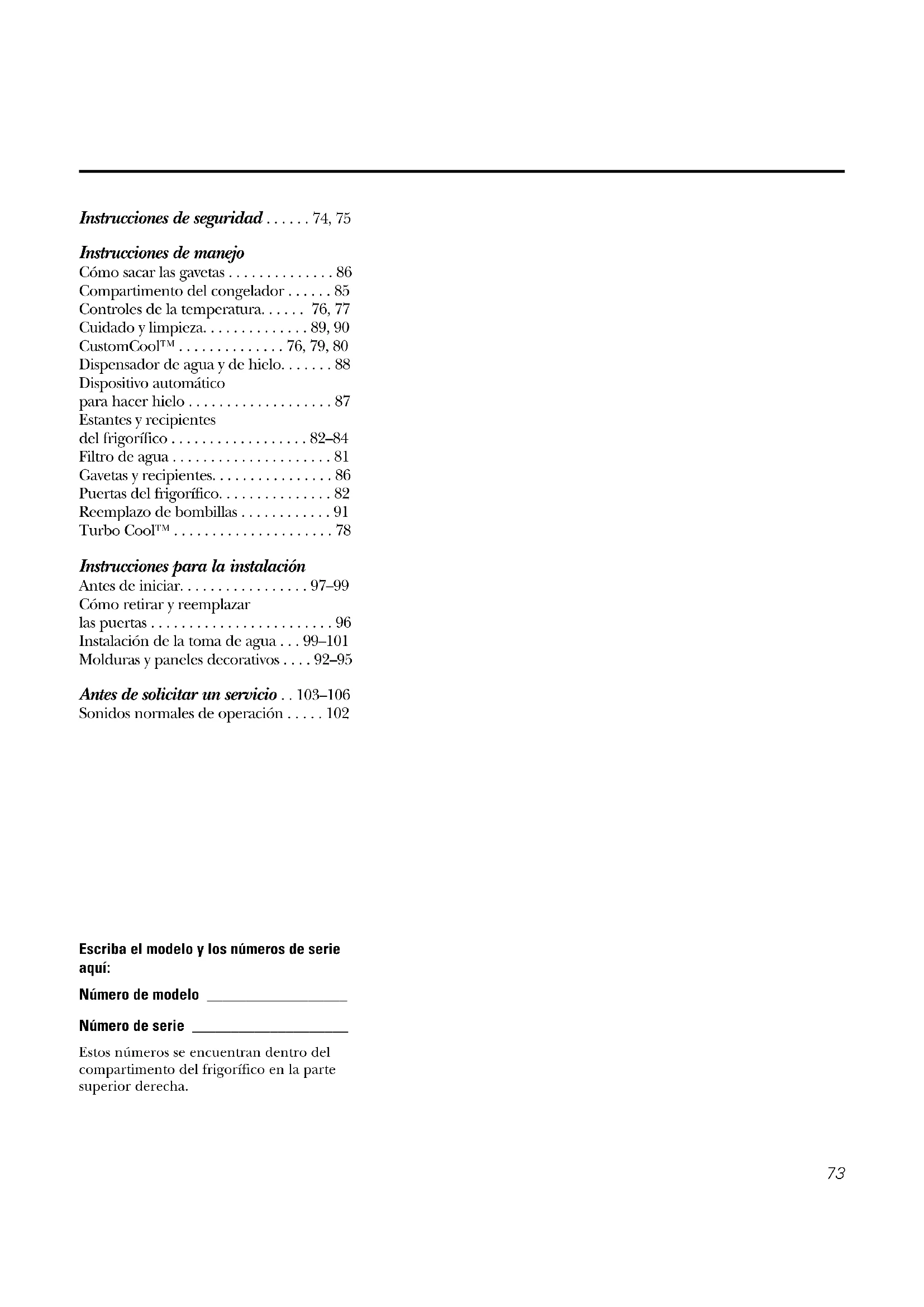 - –95 Antes de solicitar un servicio p. 103