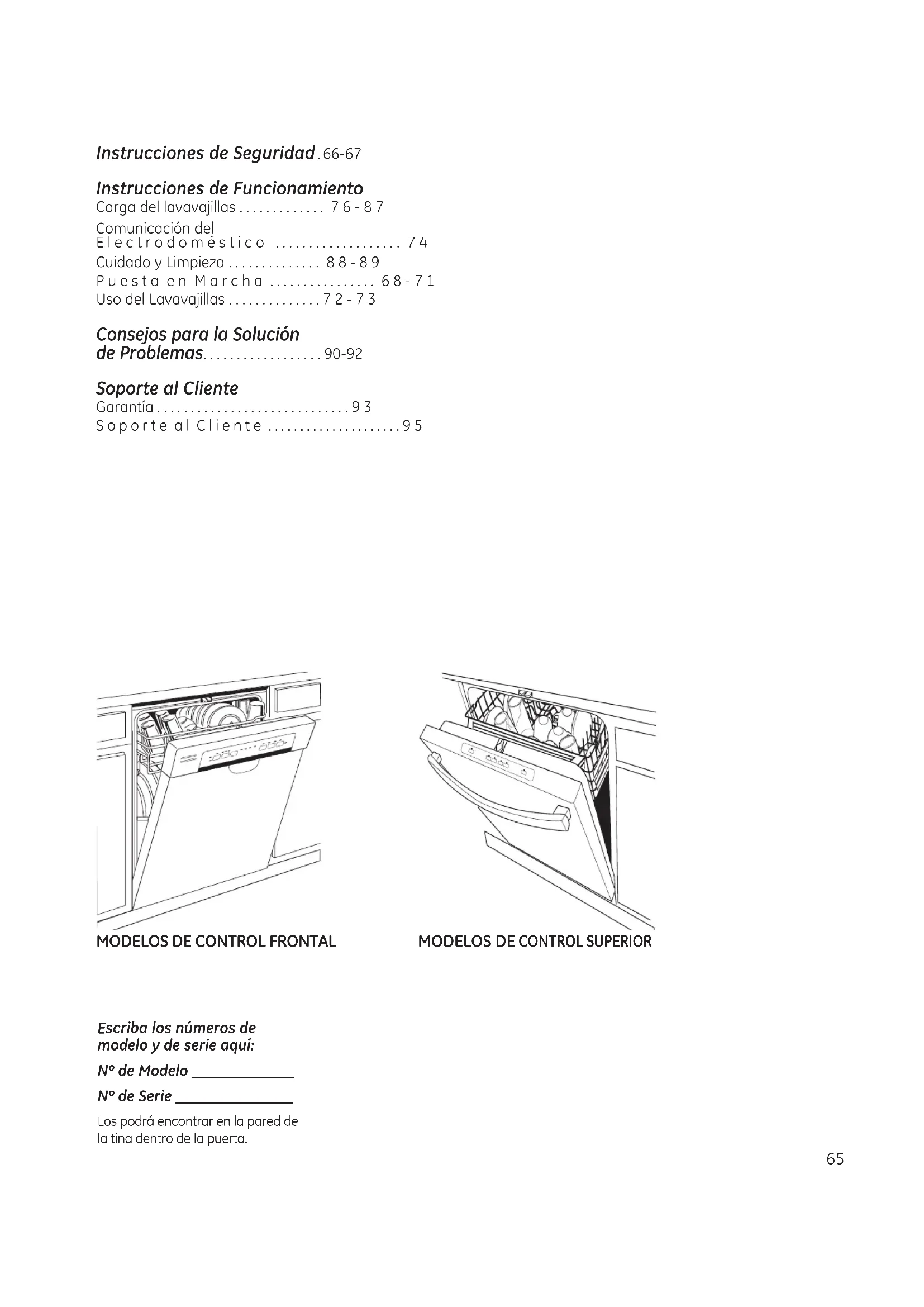 - Soporte al Cliente Escriba los números de modelo y de serie aquí: Nº de Modelo _____________ Nº de Serie _______________ Los podrá encontrar en la pared de la tina dentro de la puerta. p. 95