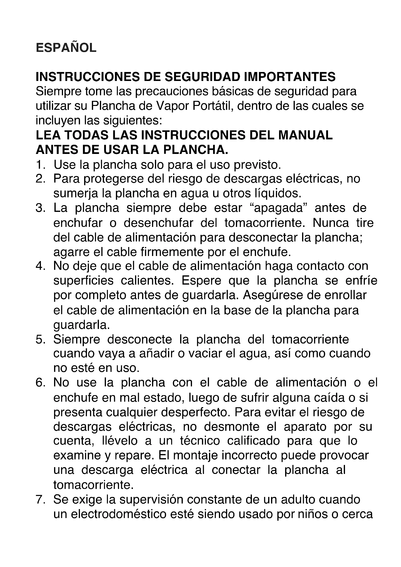Siempre tome las precauciones básicas de seguridad para utilizar su Plancha de Vapor Portátil, dentro de las cuales se incluyen las siguientes: