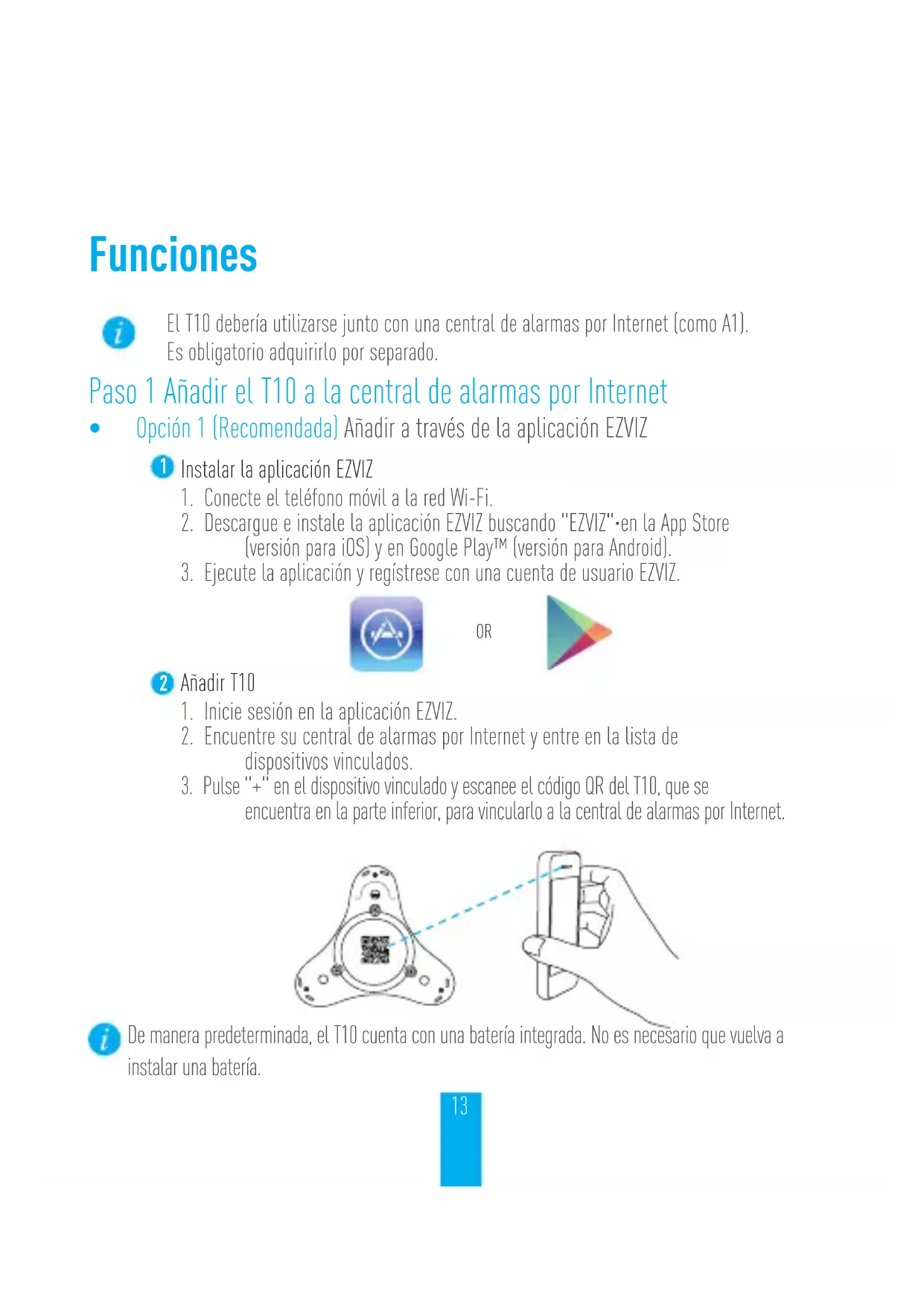 De manera predeterminada, el T10 cuenta con una batería integrada. No es necesario que vuelva a instalar una batería.14