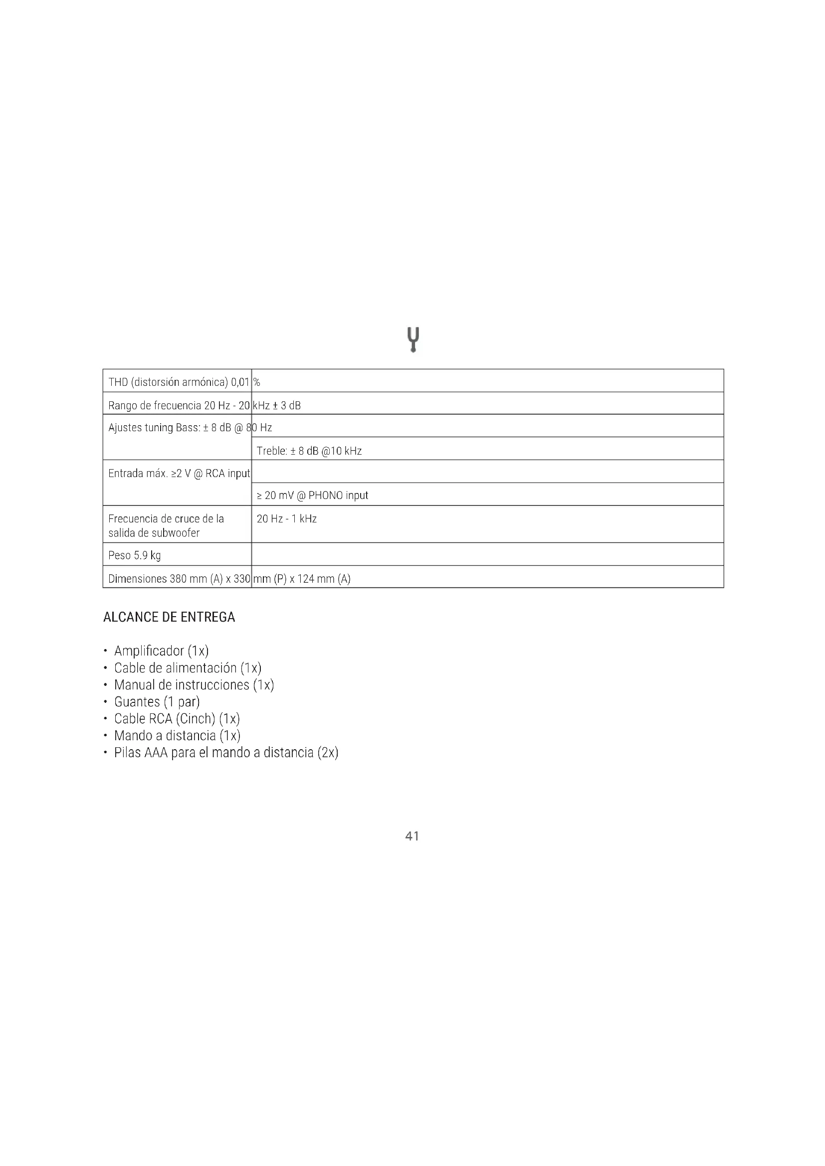 ENTRADA AUX Conecte un dispositivo fuente con audio analógico (como un reproductor de casetes o CD) al conector RCA. Para la conexión se necesita un cable con conectores RCA (no incluido). TUNER Dispositivo radio PHONO Tocadiscos CD/DVD Lector de CD/DVD LINE 1 Fuente externa con conexión AUXLINE 2 LINE 3