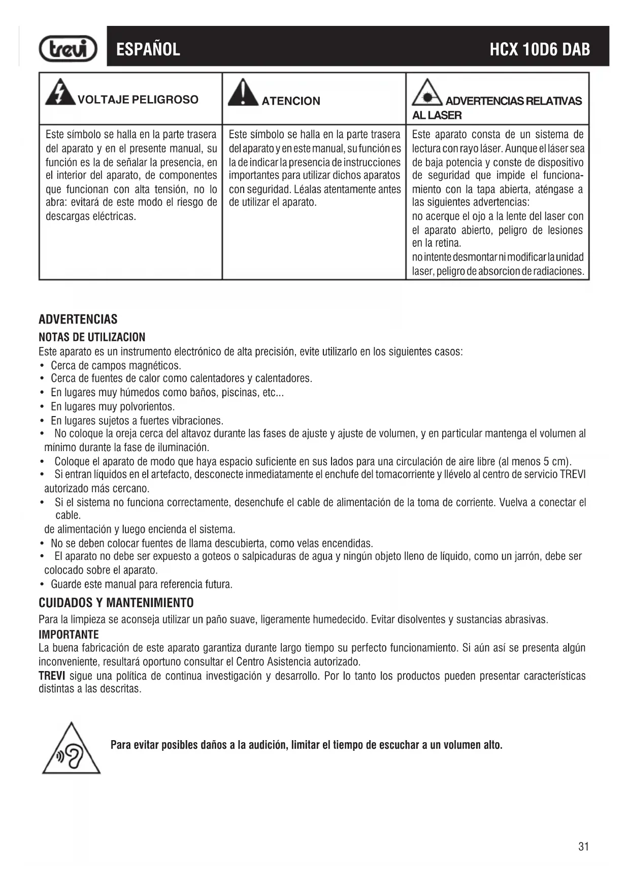 Encuentra gratis el manual del aparato HCX 10D6 DAB Trevi en formato PDF.