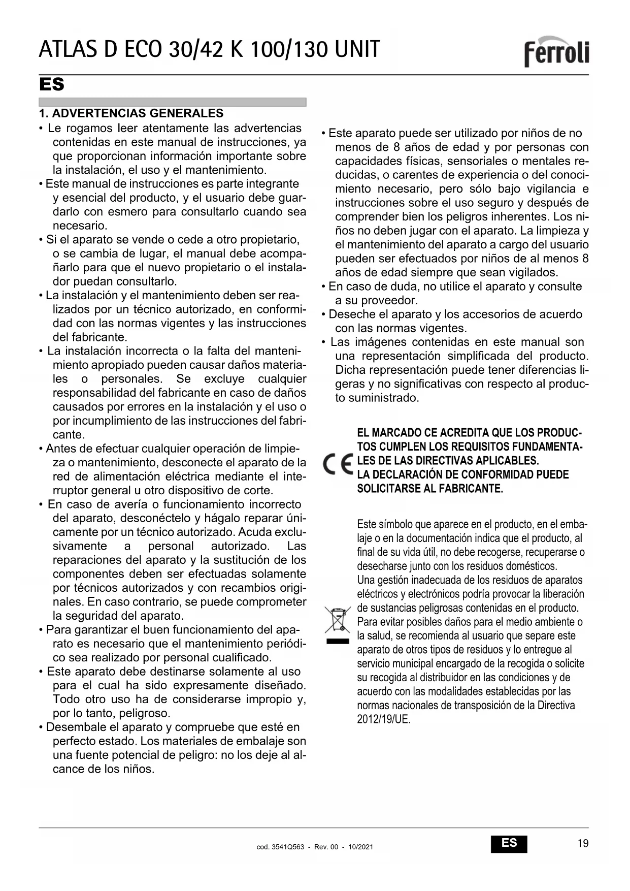 Atlas D Eco K Unit - Bomba de calor FERROLI - Manual de uso y guía de instrucciones gratis