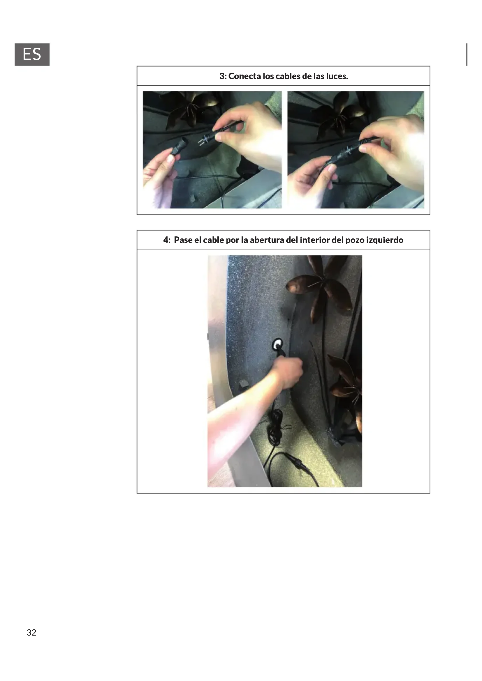 3: Conecta los cables de las luces. 4: Pase el cable por la abertura del interior del pozo izquierdo33