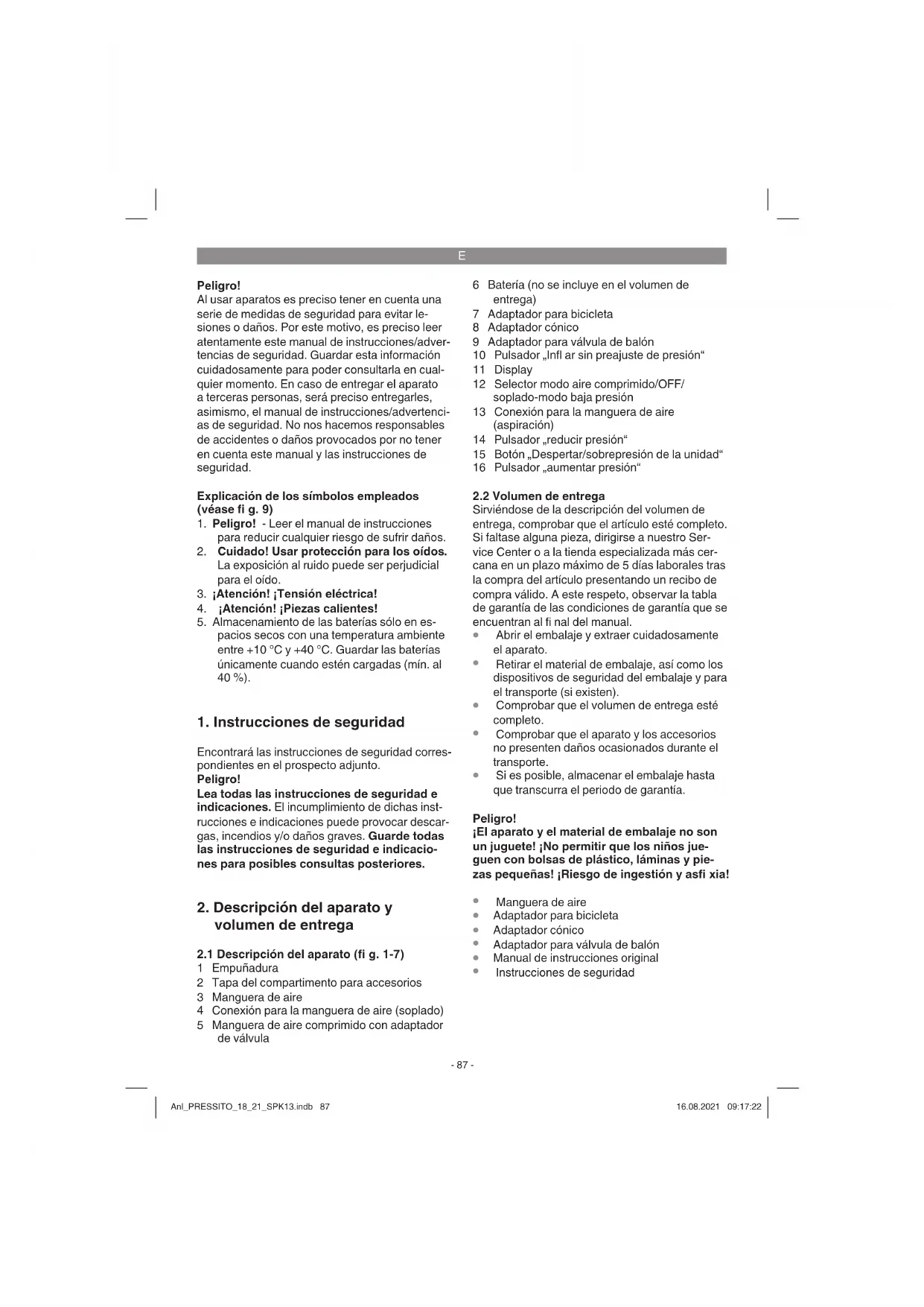 Encuentra gratis el manual del aparato Pressito 1821 EINHELL en formato PDF.