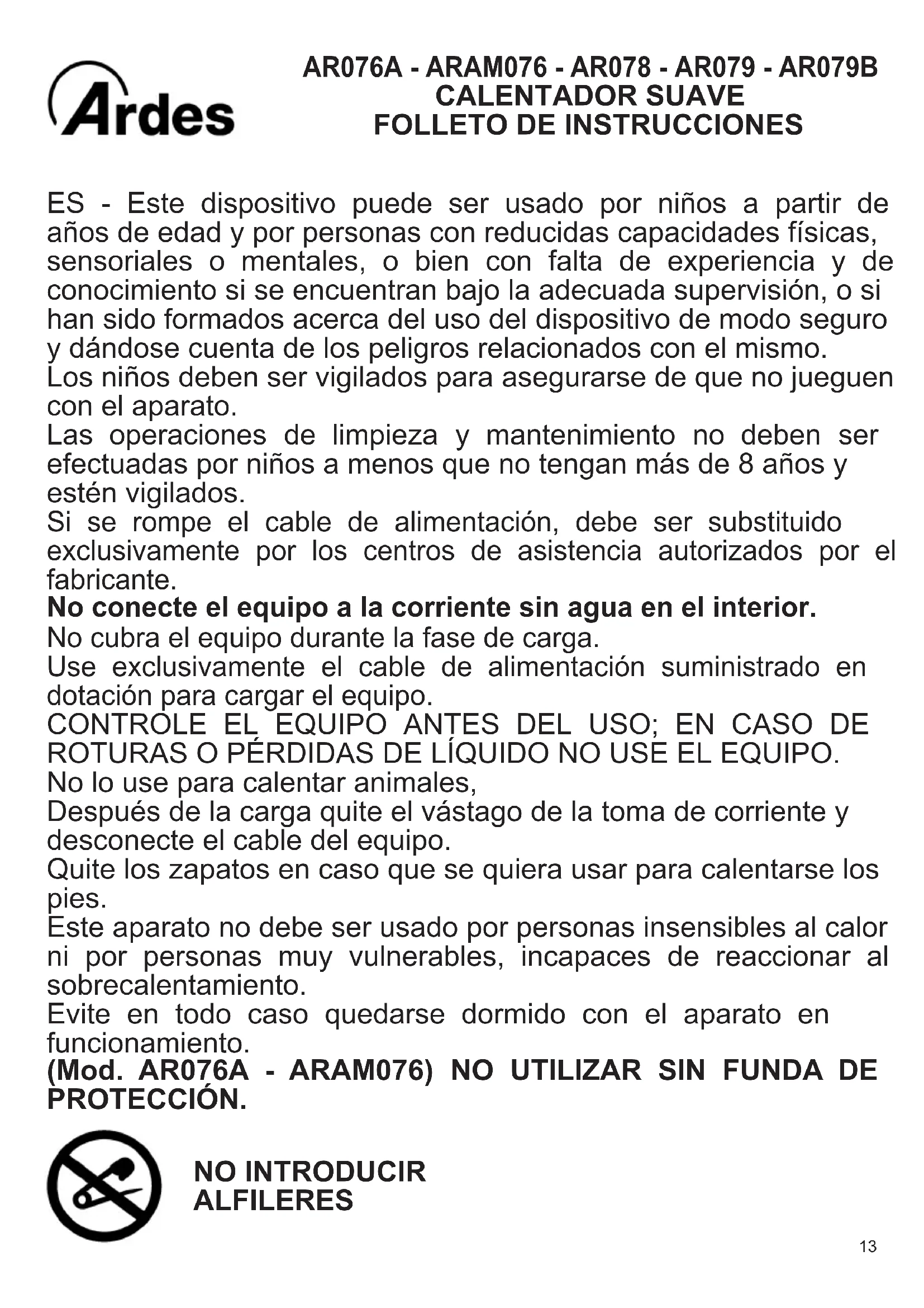 AR079B - Manta/cojín térmico ARDES - Manual de uso y guía de instrucciones gratis