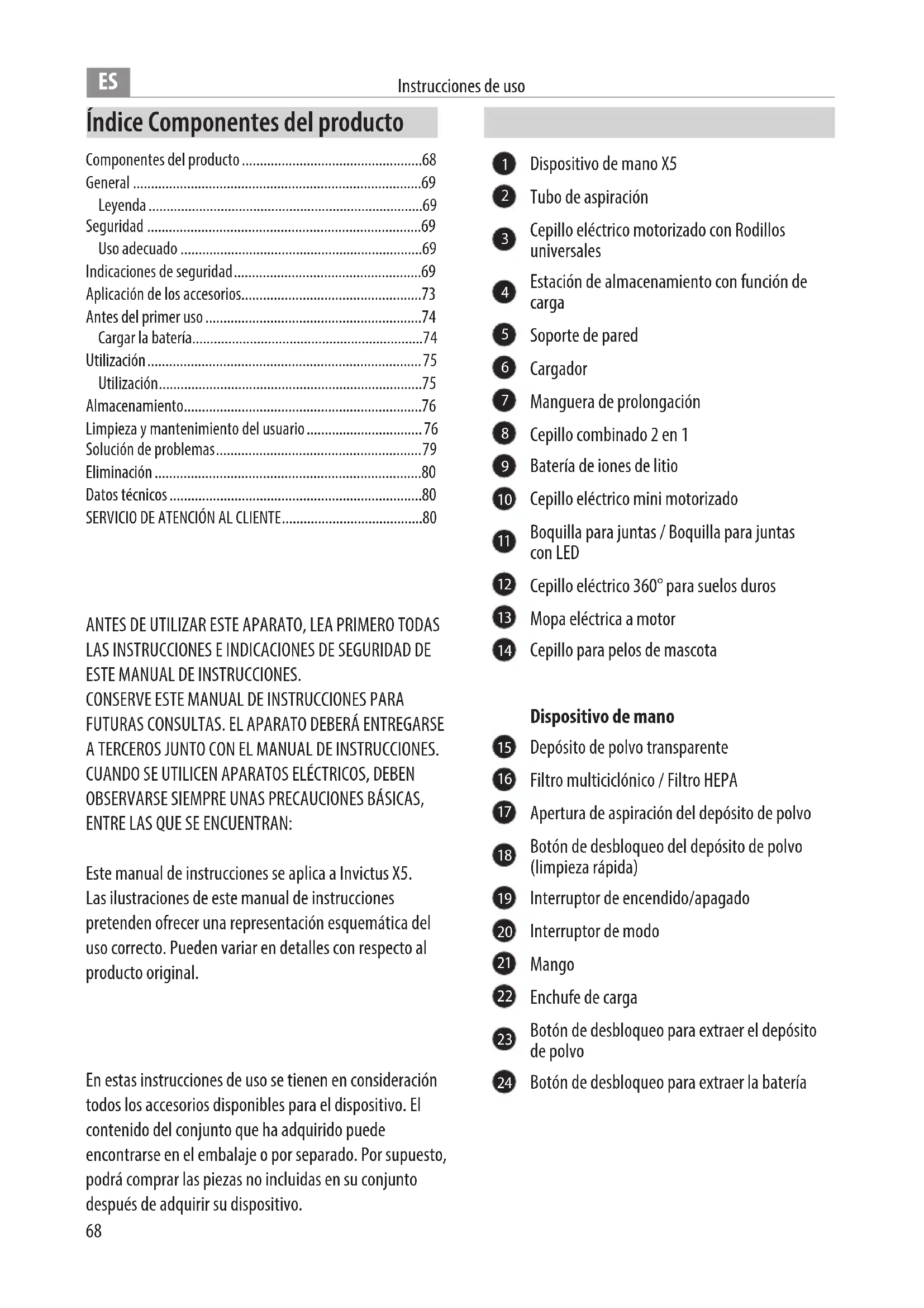 Invictus X5 - Aspiradora GENIUS - Manual de uso y guía de instrucciones gratis