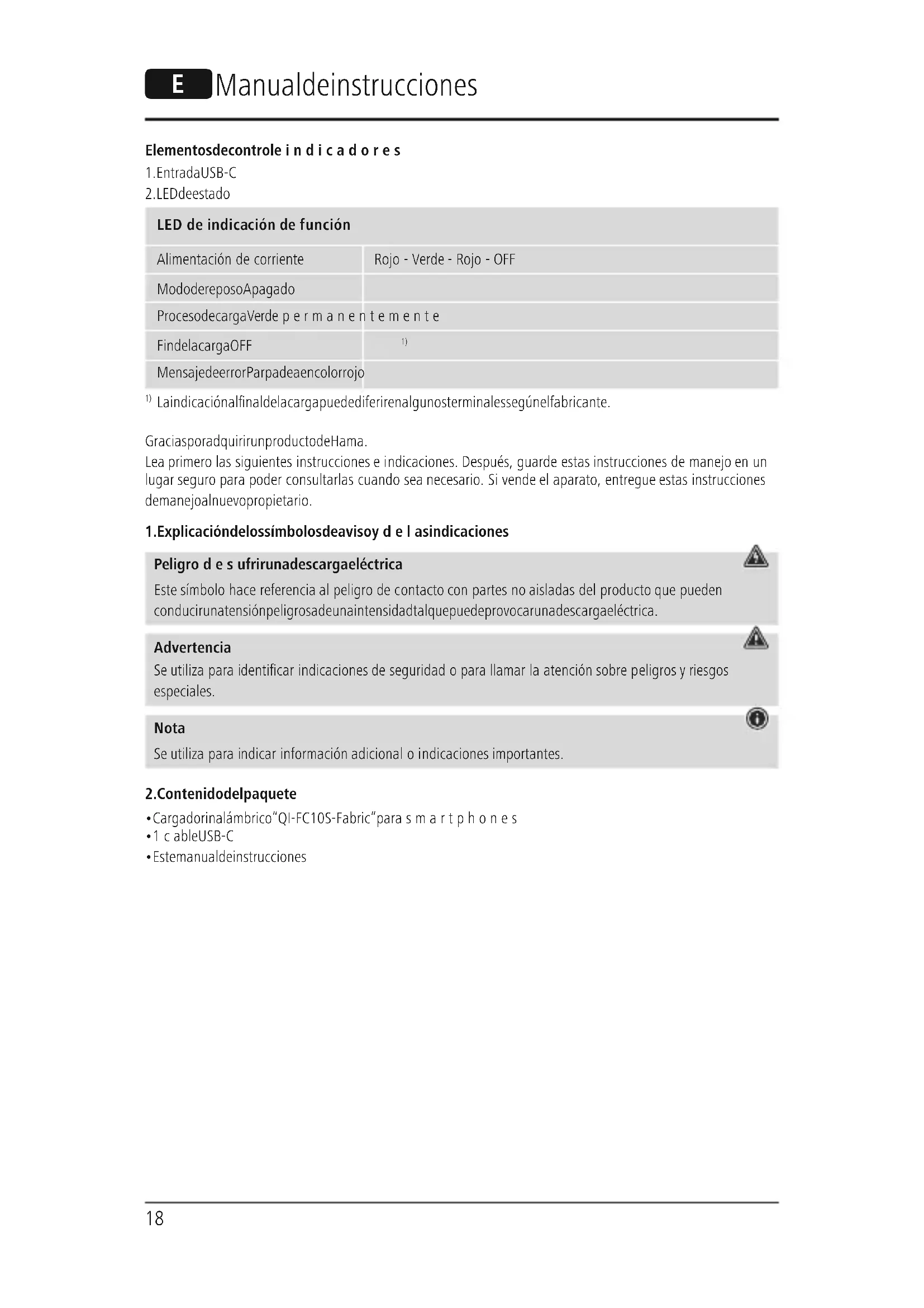 La indicación al nal de la carga puede diferir en algunos terminales según el fabricante. Gracias por adquirir un producto de Hama. Lea primerolas siguientes instrucciones eindicaciones. Después, guarde estas instrucciones de manejo en un lugar seguroparapoder consultarlas cuando sea necesario. Si vende el aparato, entregue estas instrucciones de manejo al nuevo propietario.