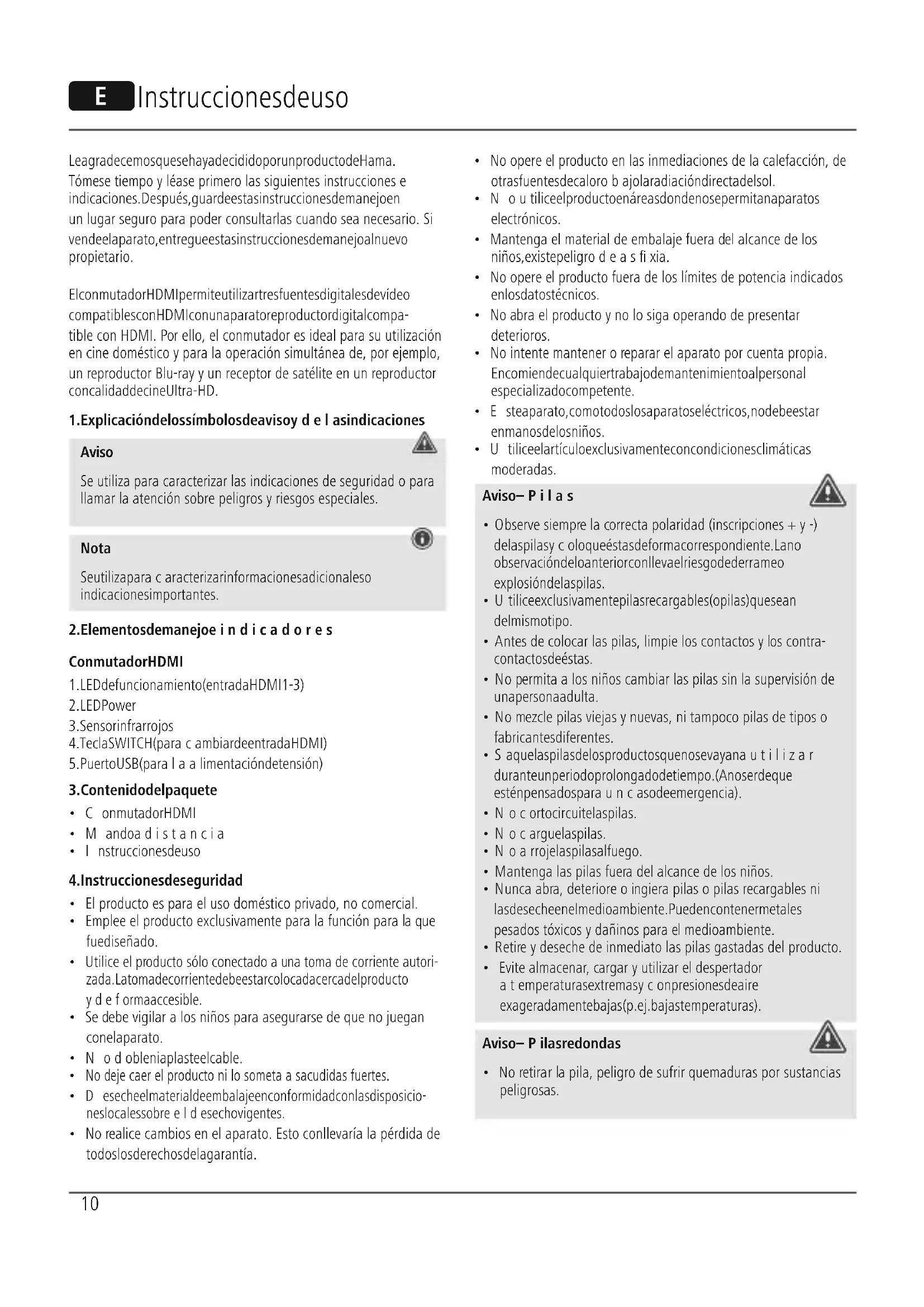 - Este producto contiene pilas de botón. La ingestión de una pila de botón puede conllevar quemaduras internas graves en tan solo 2horas yprovocar la muerte.