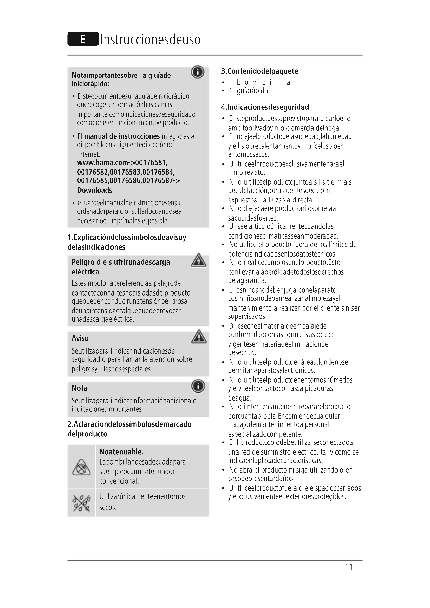 La empresa Hama GmbH &CoKGnose responsabiliza ni concede garantía alguna por los daños que se deriven de una instalación, montaje omanejo incorrectos del producto o por la inobservancia de las instrucciones de uso odelas indicaciones de seguridad.13