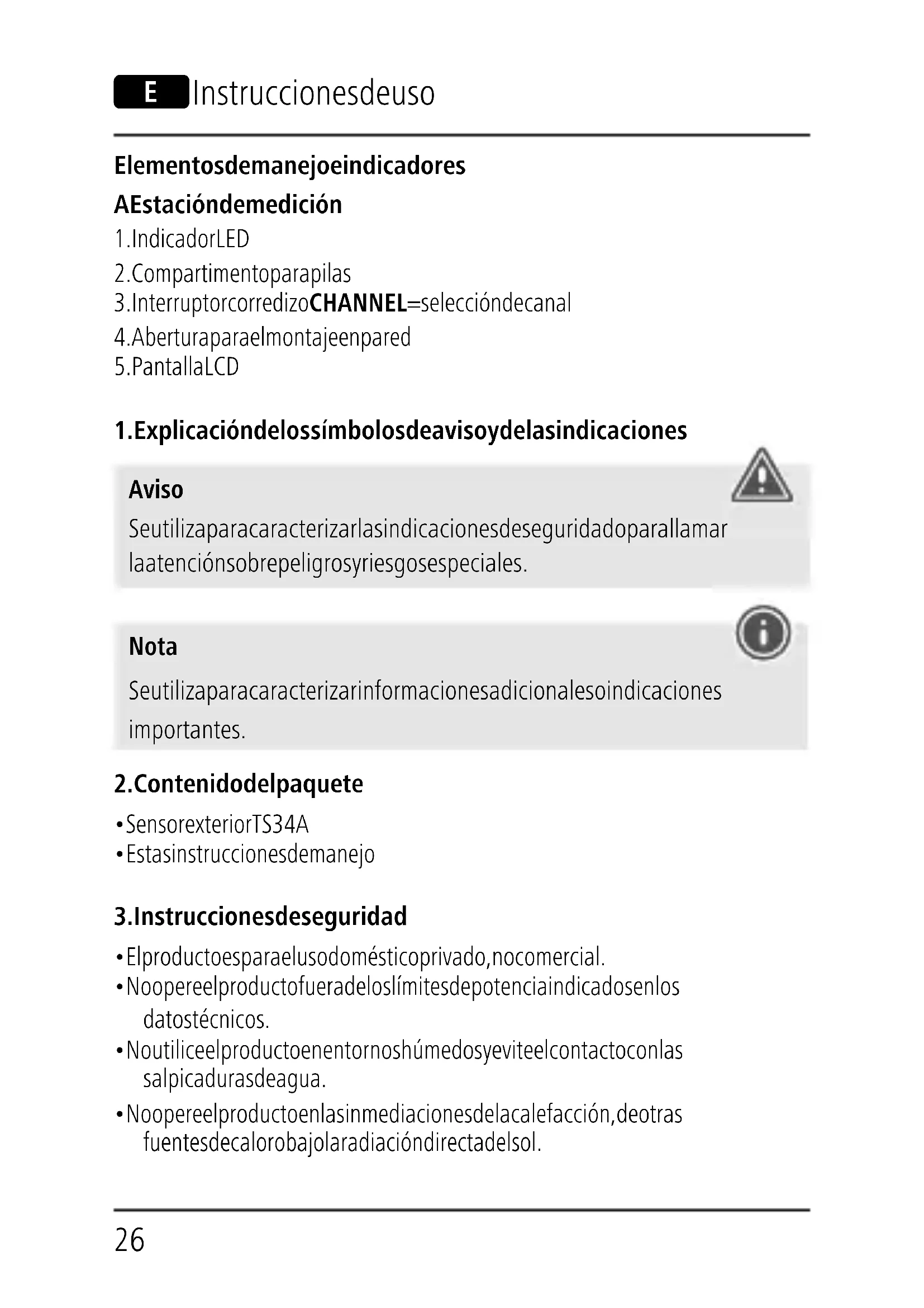- Utilice el artículo exclusivamente con condiciones climáticas moderadas. Aviso – Pilas