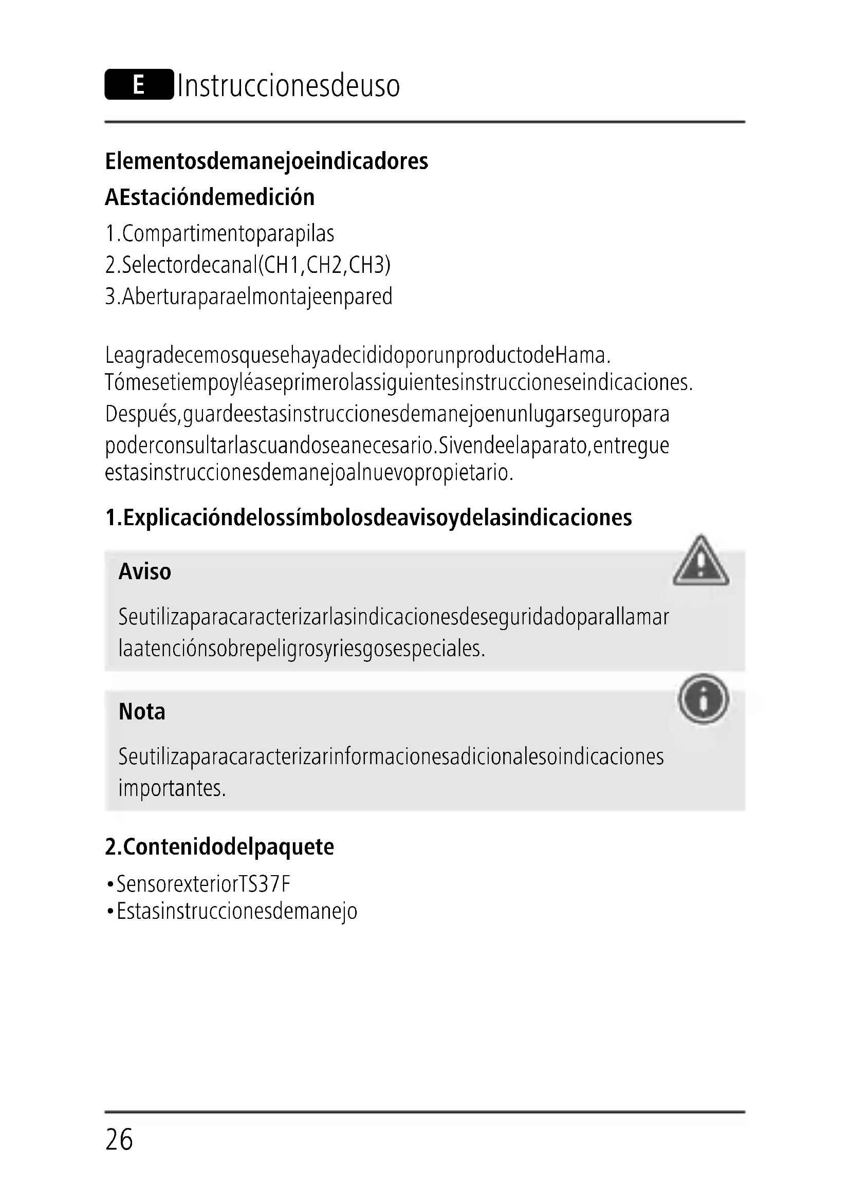 - Estas instrucciones de manejo E Instrucciones de uso27