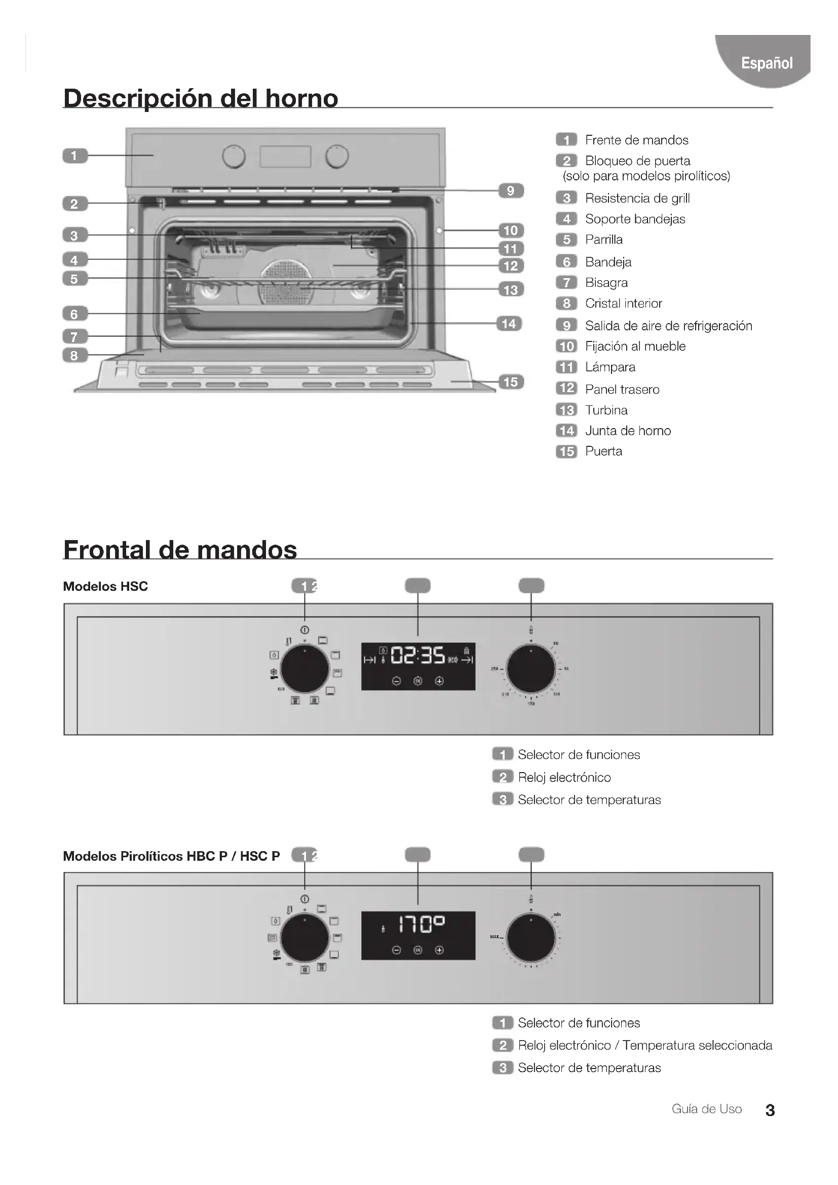 Modelos Pirolíticos HBC P / HSC P4 Guía de Uso Símbolos del selector de funciones Modelo HSC 635 Modelos HBC 625 P, HSC 635 P Funciones del horno