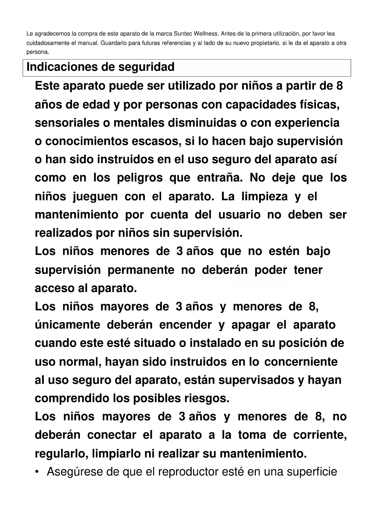 - En caso de que quiera llevar a cabo una reclamación, lleve el aparato en el embalaje original con el comprobante de compra al distribuidor en el que lo adquirió. Si desea registrarse para nuestro rápido y cómodo servicio de atención al cliente, visite nuestra página web www.suntec-wellness.de e infórmese sobre los servicios disponibles.