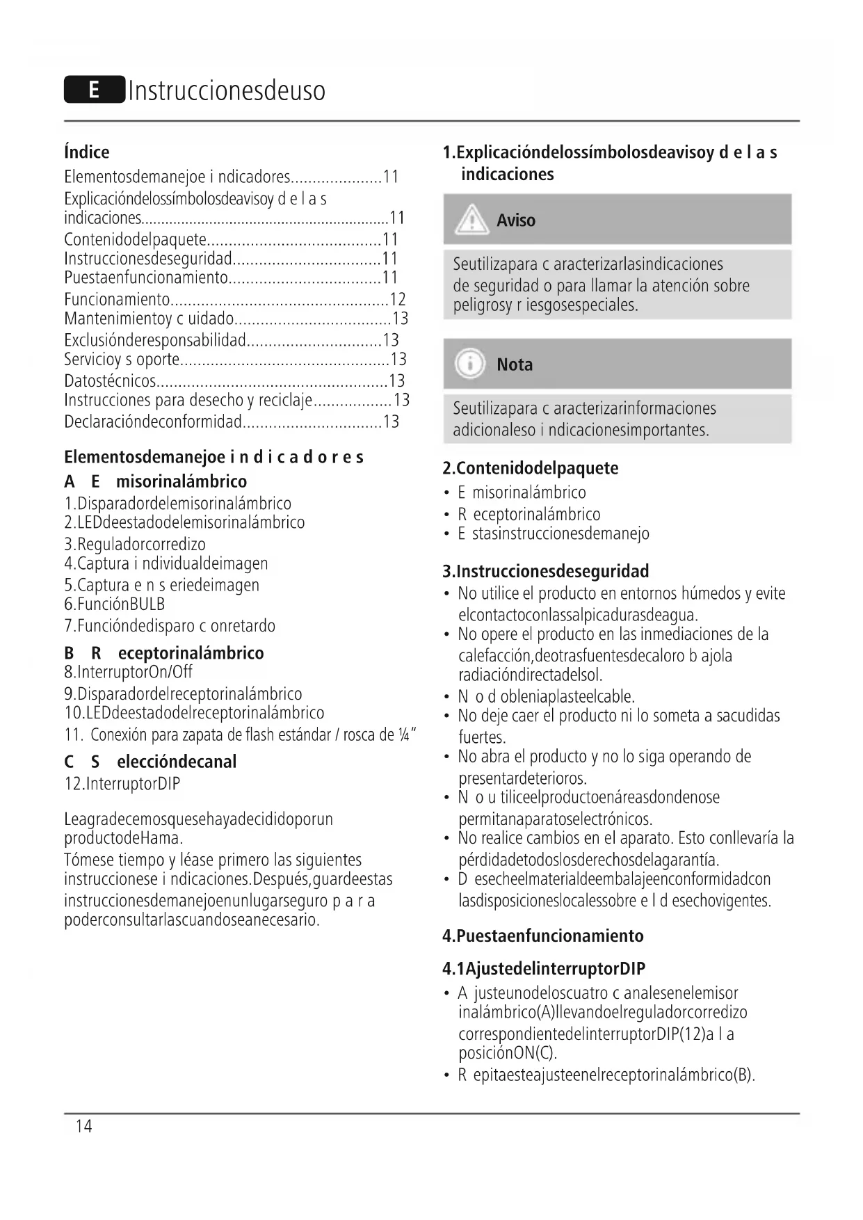 Hama GmbH &CoKGnoseresponsabiliza ni concede garantía por los daños que surjan por una instalación, montaje omanejo incorrectos del producto opor la no observación de las instrucciones de manejo y/o de las instrucciones de seguridad.