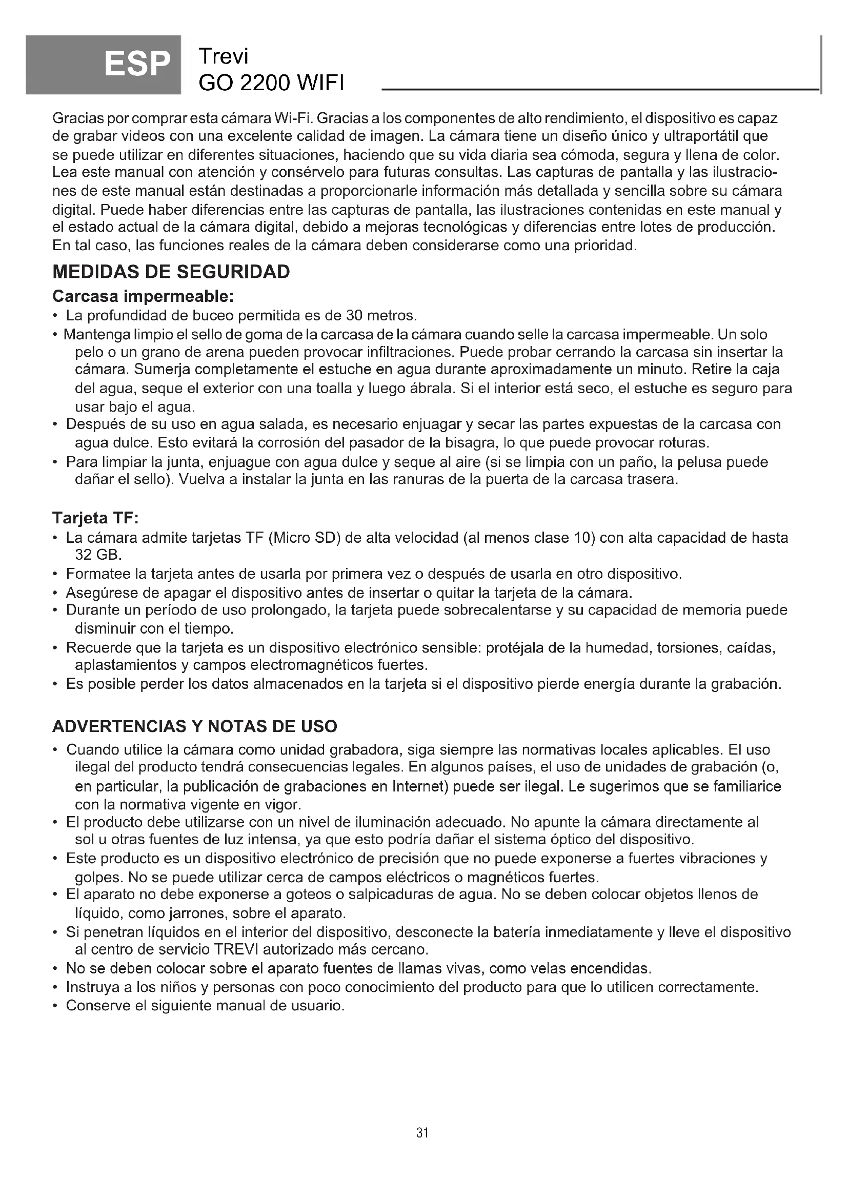 GO 2200 WIFI - Cámara deportiva Trevi - Manual de uso y guía de instrucciones gratis