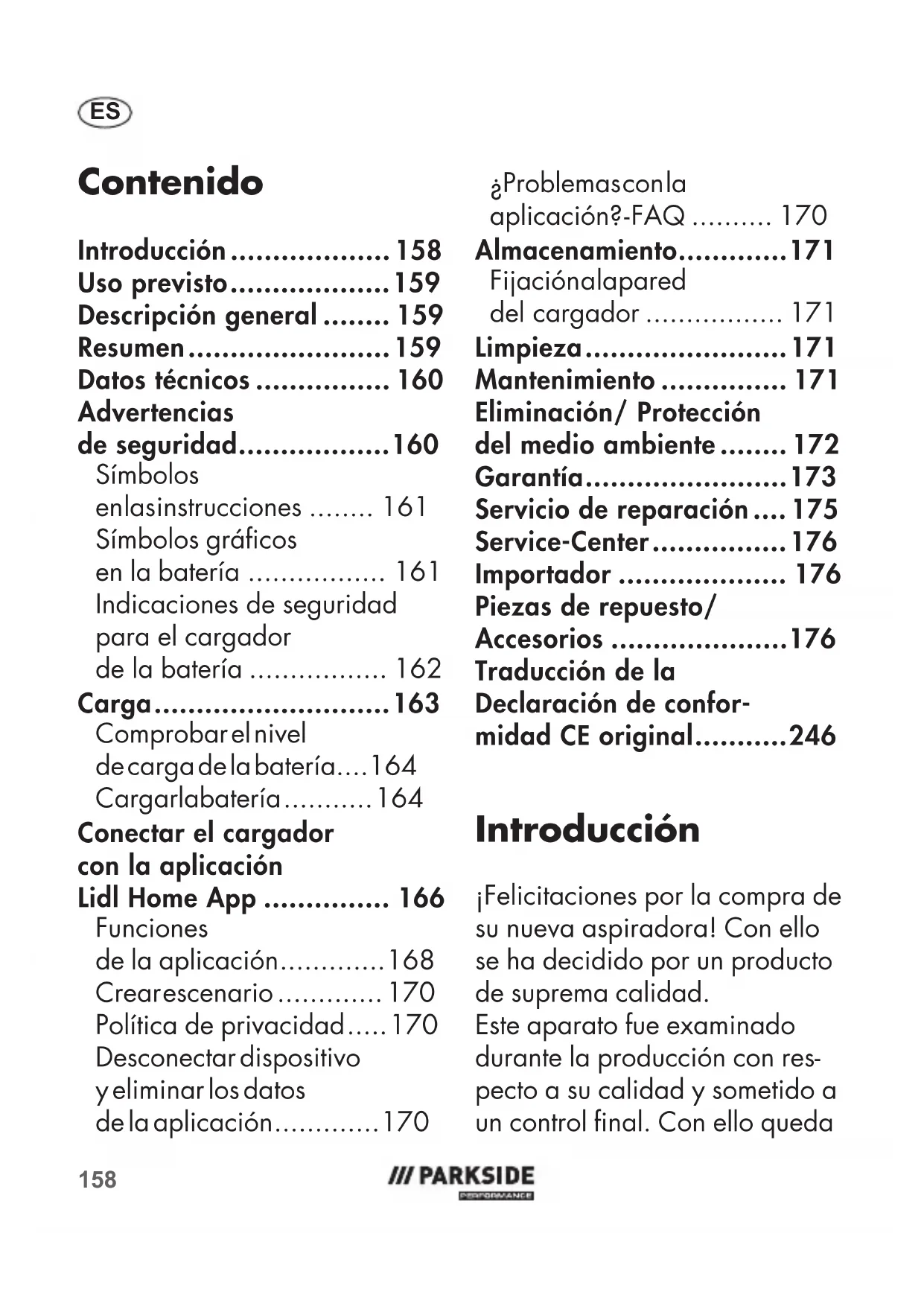 - Piezas de repuesto/ Accesorios Introducción ¡Felicitaciones por la compra de su nueva aspiradora! Con ello se ha decidido por un producto de suprema calidad. Este aparato fue examinado durante la producción con res- pecto a su calidad y sometido a un control nal. Con ello queda159 p. 176