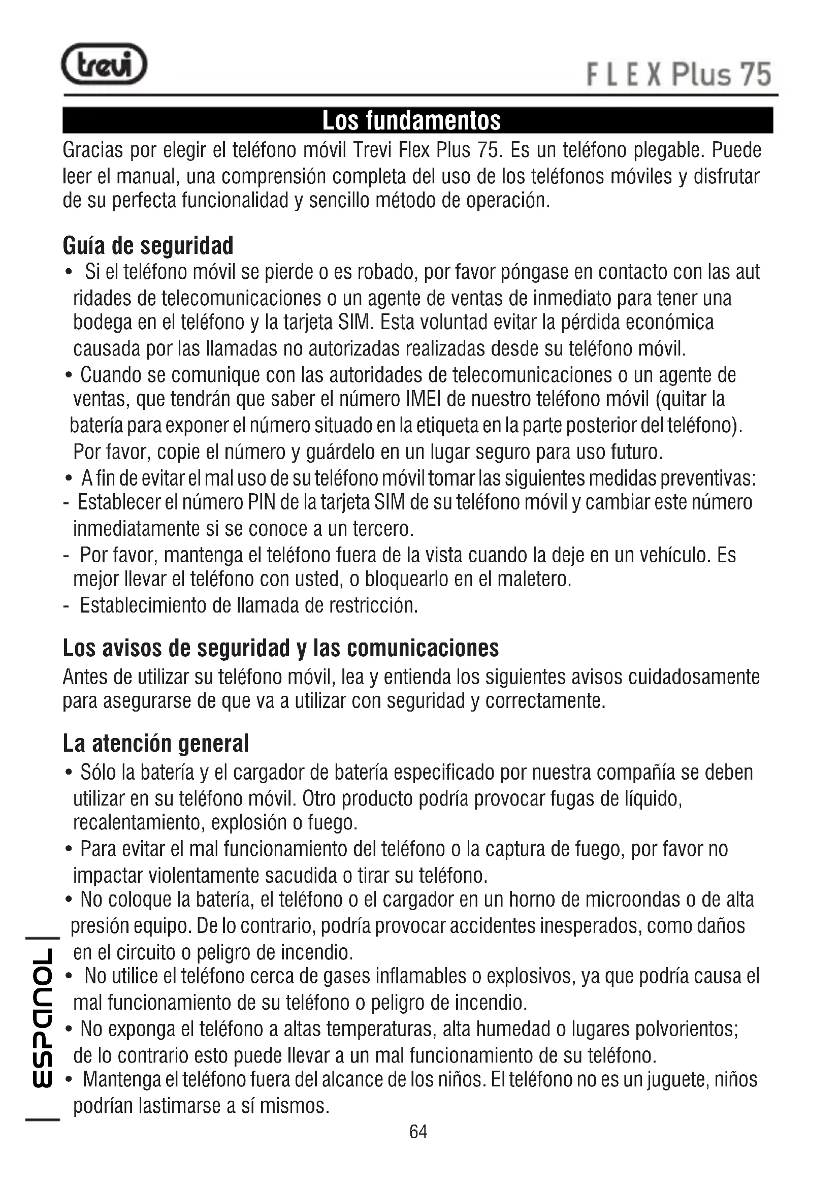 MANUAL DE USUARIO FLEX Plus 75 Trevi