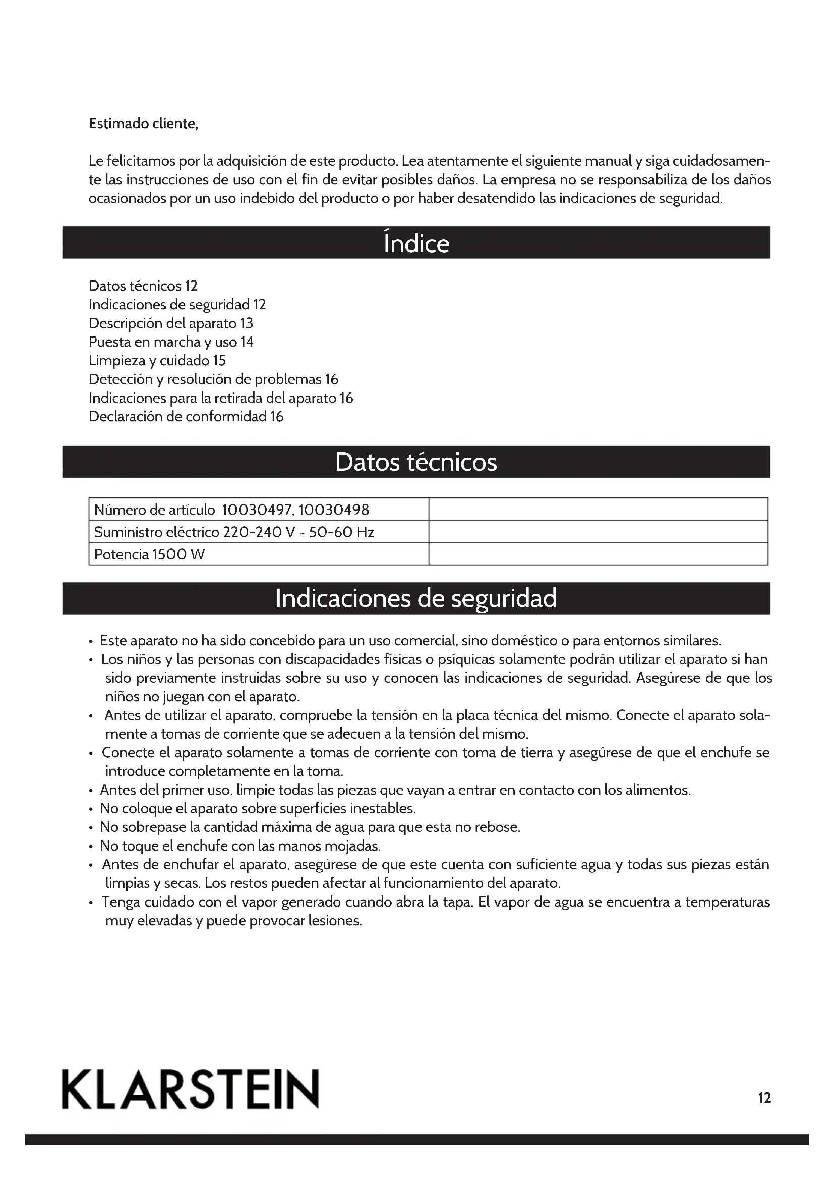 Indicaciones de seguidad 12