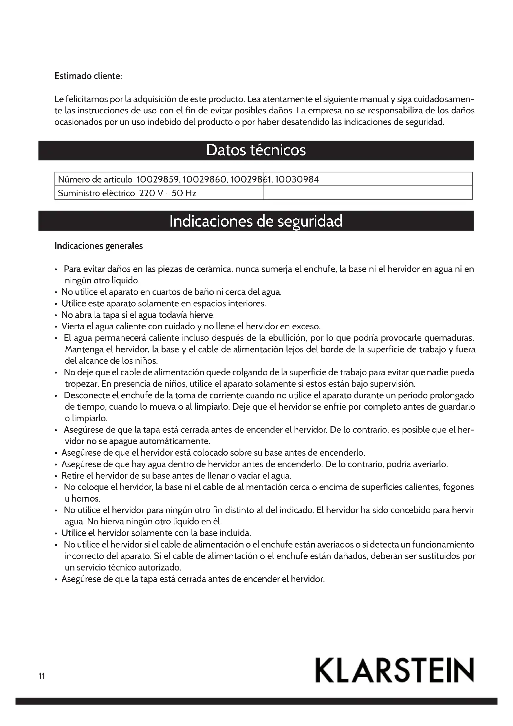 Teatime - Pava Klarstein - Manual de uso y guía de instrucciones gratis