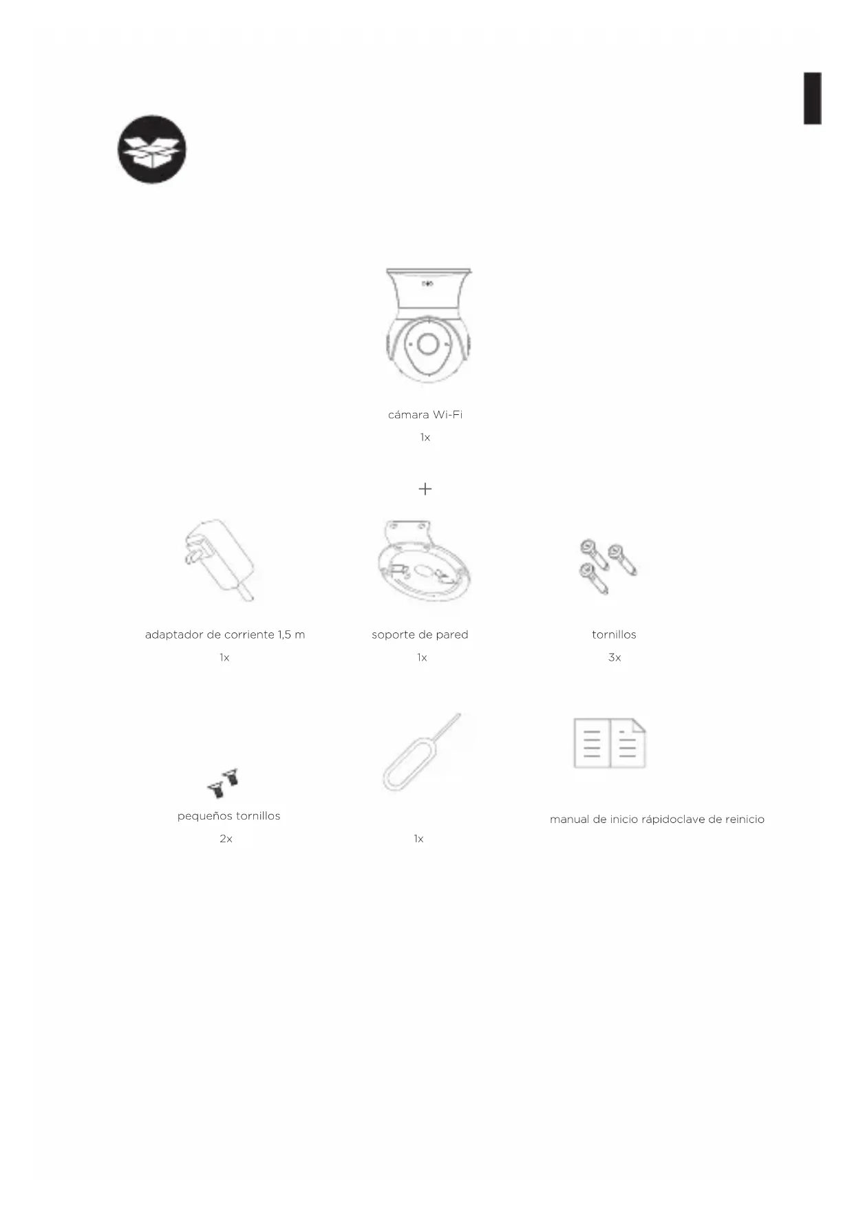 Luz roja ja: la conexión de la cámara es anormal Luz roja intermitente: esperando conexión Wi-Fi o conectándose (intermitencia rápida) Luz azul ja: la cámara funciona correctamente Luz azul intermitente: esperando conguración manual de Wi-Fi o conectándose (intermitencia rápida) Descripción del aparato