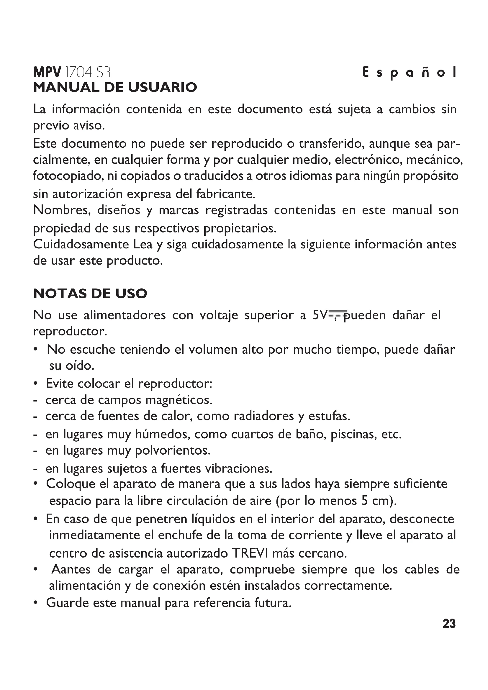 MANUAL DE USUARIO MPV 1704 SR Trevi
