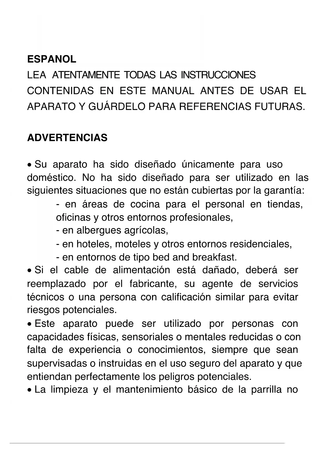 - La limpieza y el mantenimiento básico de la parrilla nodeben ser realizados por niños, a menos que tengan más de 8 años y sean supervisados.