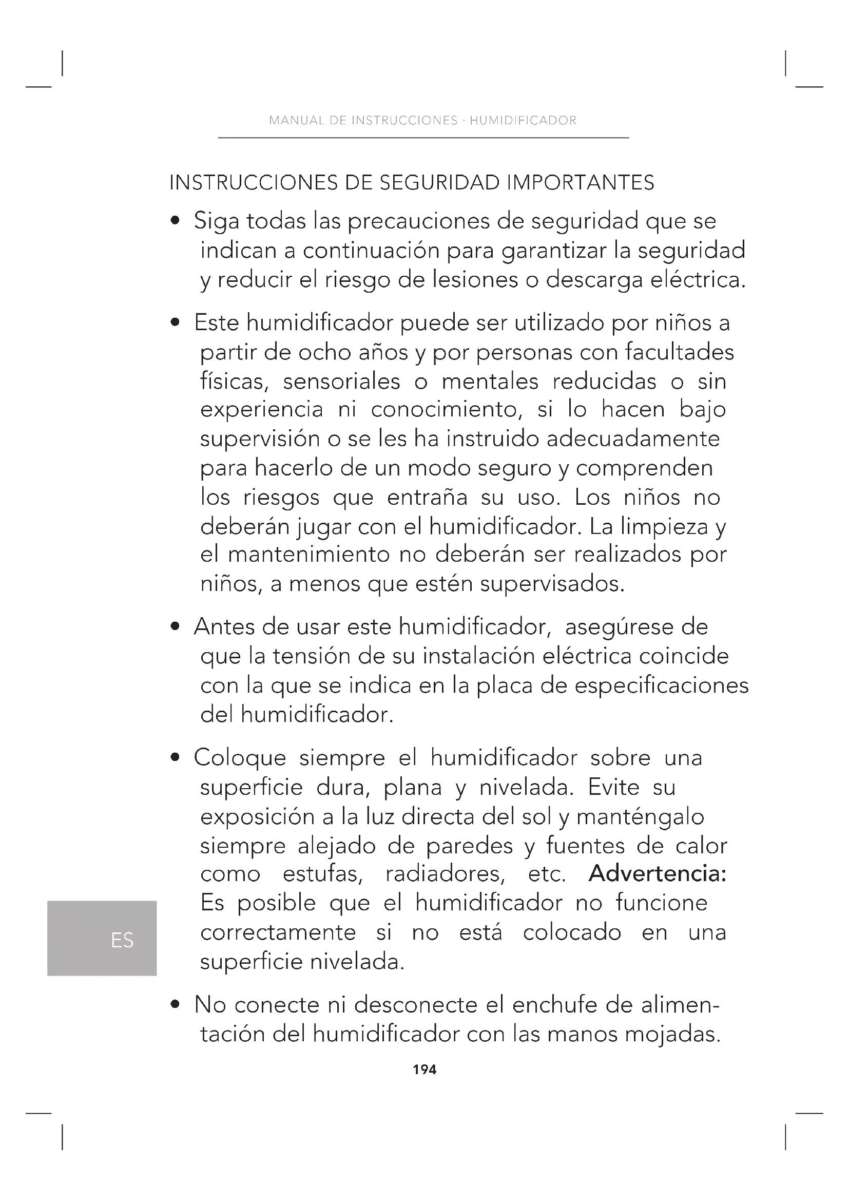 MANUAL DE INSTRUCCIONES · HUMIDIFICADOR193
