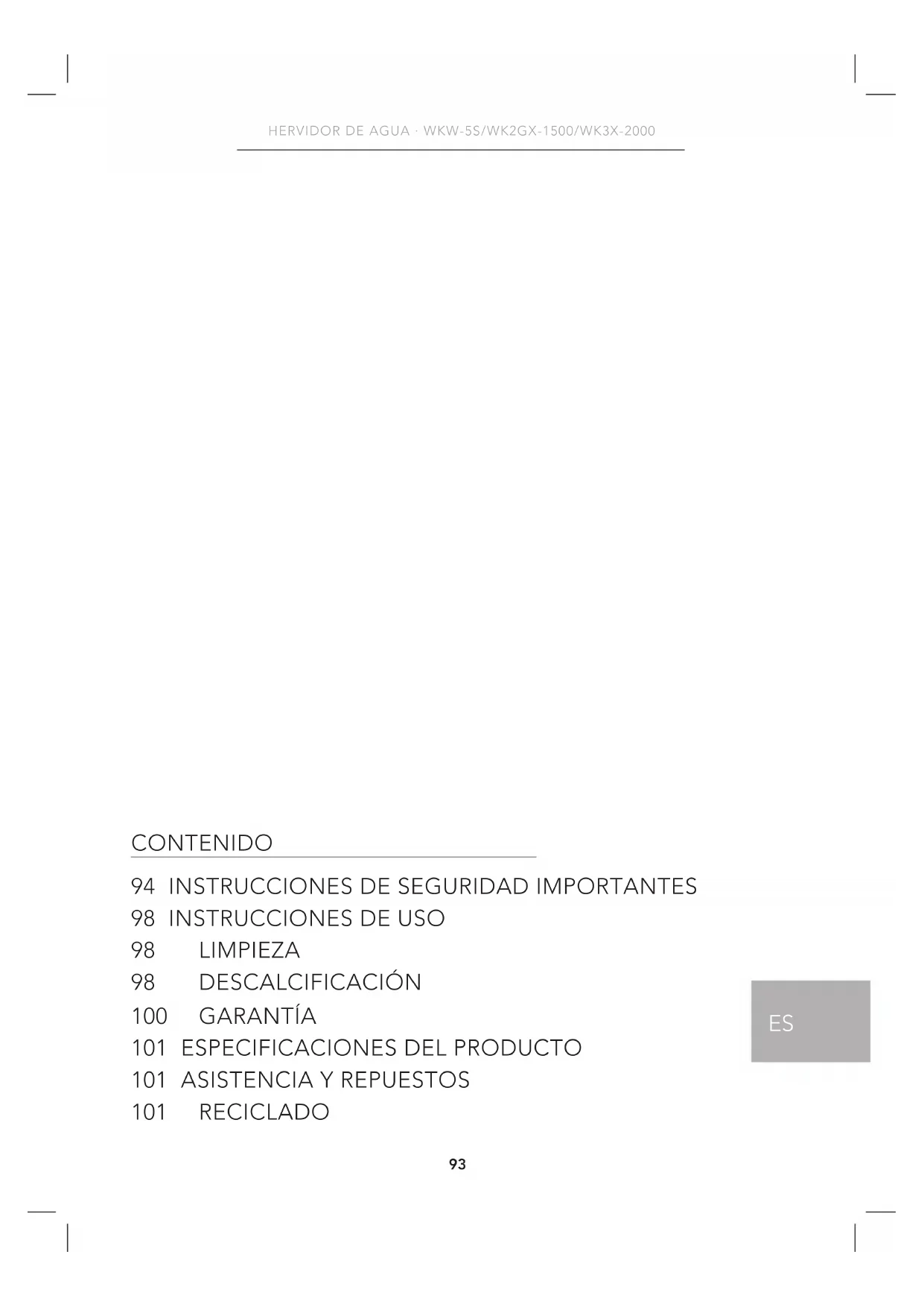Si necesita asistencia, visite wilfa.com y consulte nuestra página de asistencia/ atención al cliente. Aquí encontrará preguntas frecuentes, repuestos, consejos y trucos, así como nuestra información de contacto. RECICLADO Esta marca indica que el producto no debe eliminarse junto con otros residuos domésticos en toda la UE. Para evitar posibles daños en el medio ambiente o la salud por la eliminación incontrolada de residuos, recicle de forma responsable para fomentar la reutilización sostenible de los recursos materiales. Para devolver el producto usado, utilice los sistemas de devolución y recogida o póngase en contacto con el distribuidor donde lo adquirió. Ellos podrán llevar este producto a un punto de reciclaje seguro para el medio ambiente de forma gratuita.102