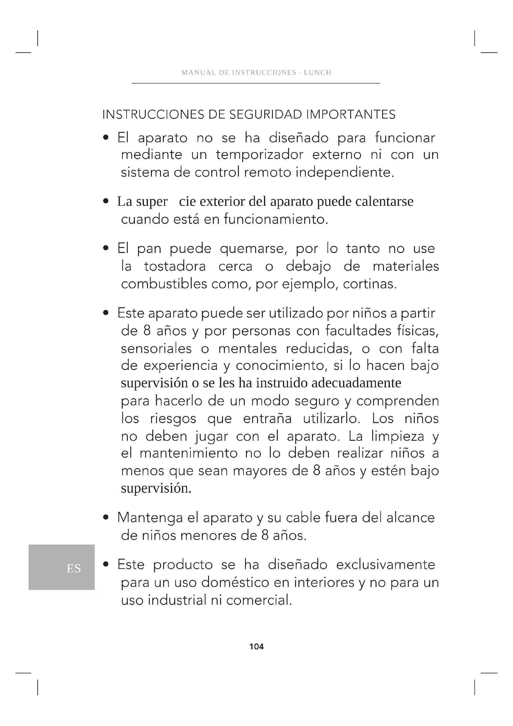 - Este producto se ha diseñado exclusivamente para un uso doméstico en interiores y no para un uso industrial ni comercial.105