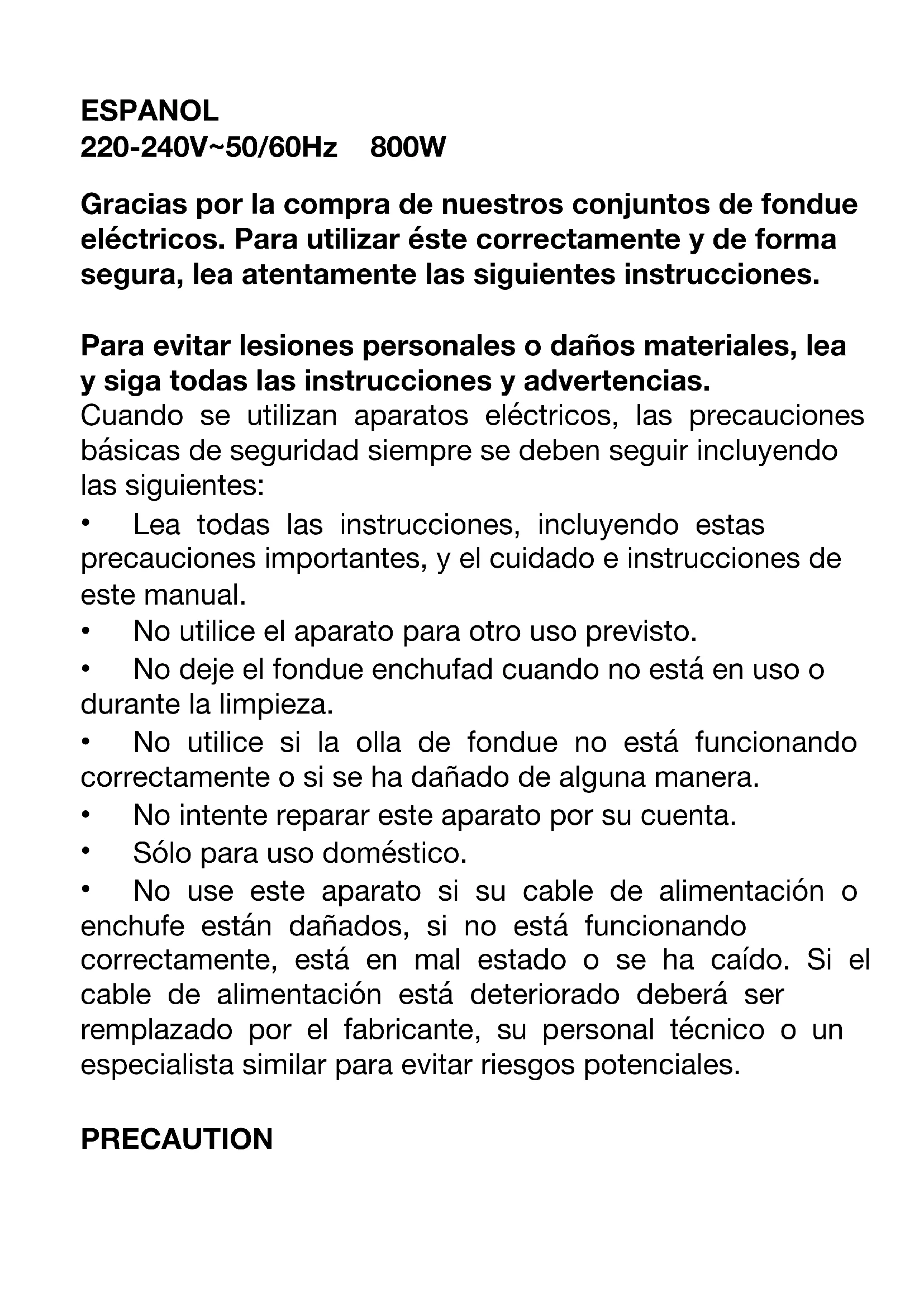 Gracias por la compra de nuestros conjuntos de fondue eléctricos. Para utilizar éste correctamente y de forma segura, lea atentamente las siguientes instrucciones.