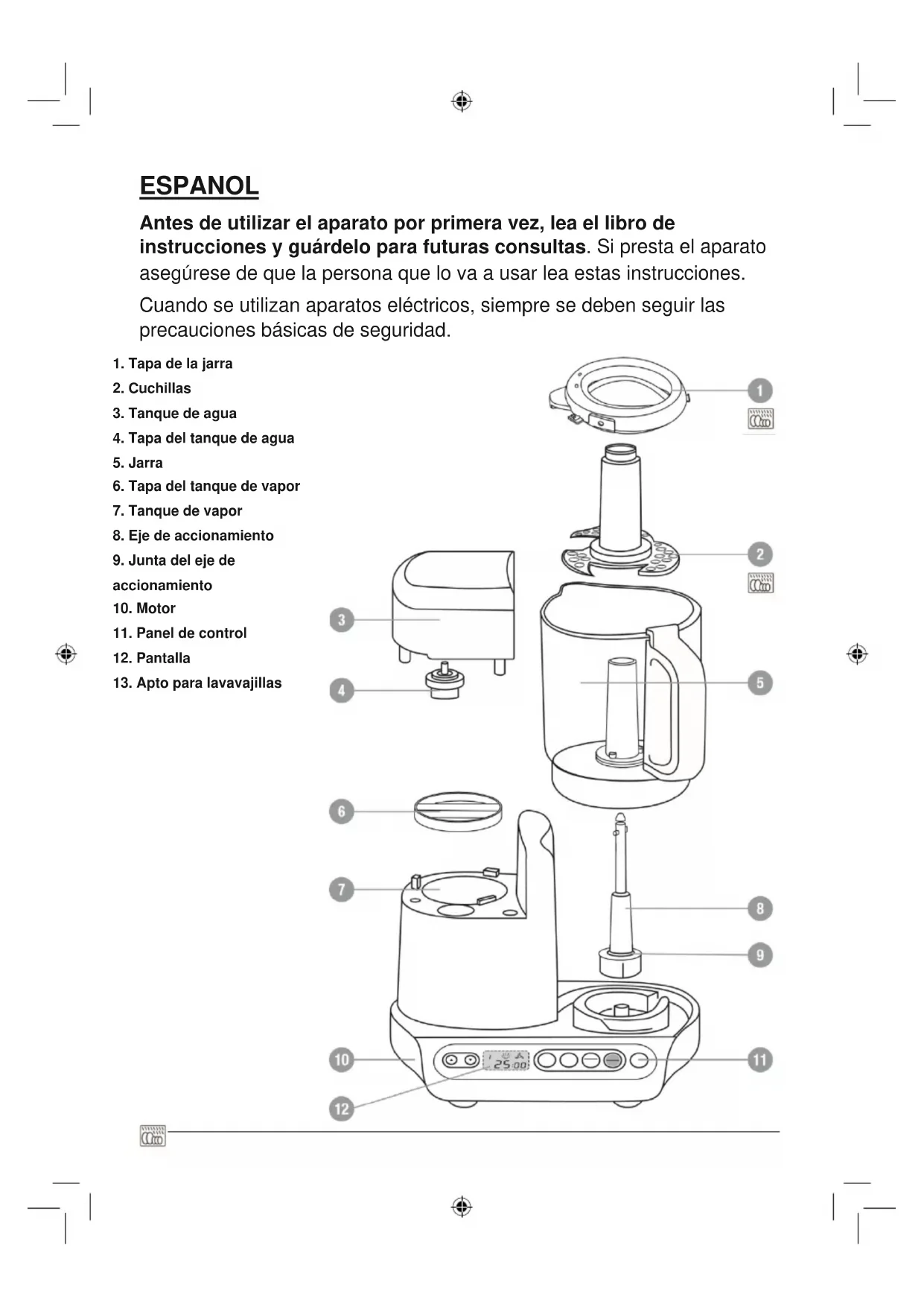 10. Las partes seguras para el lavavajillas están etiquetadas en la página
