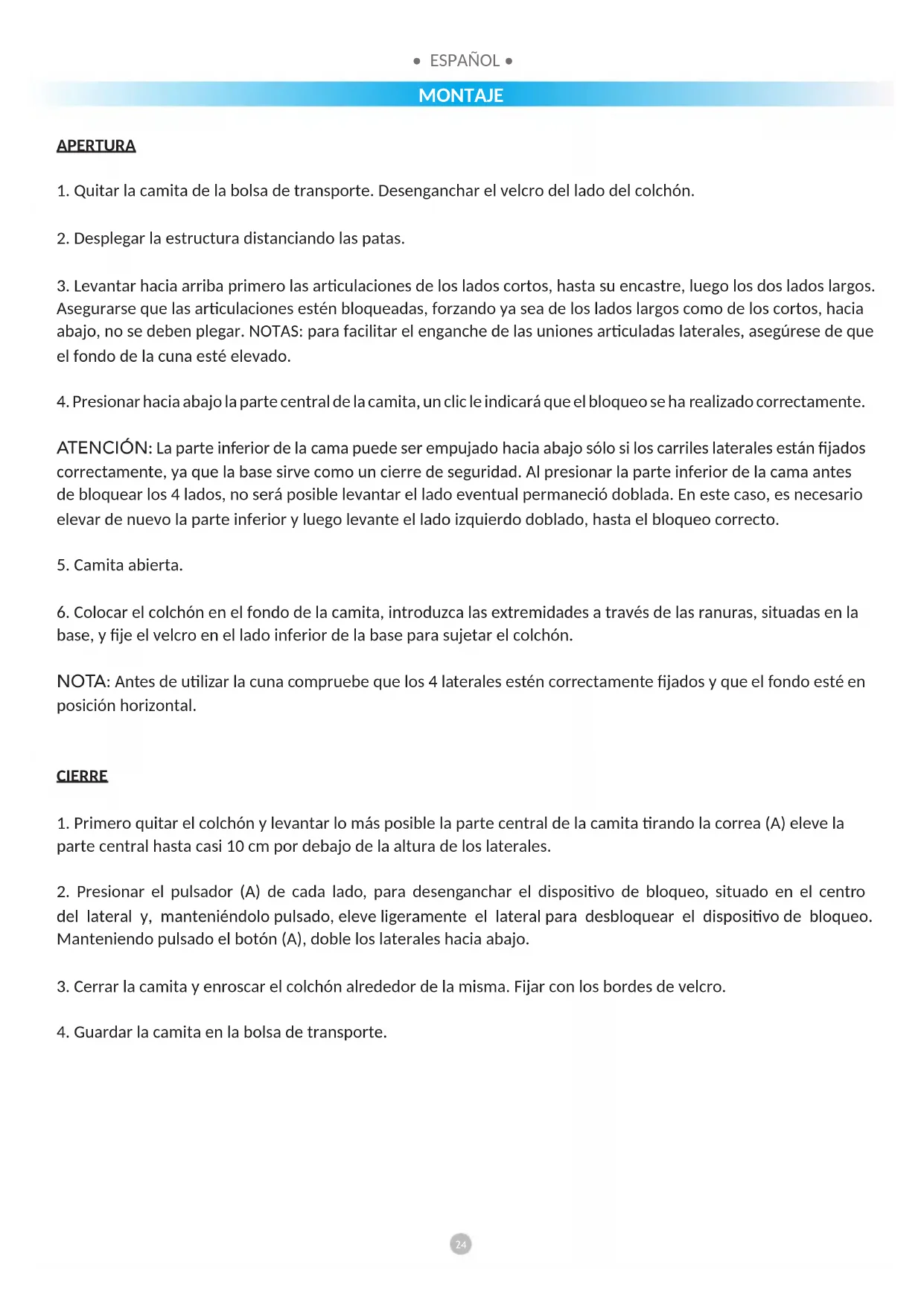 - ATENCIÓN: No realizar las operaciones de cierre de la cuna con el niño dentro.