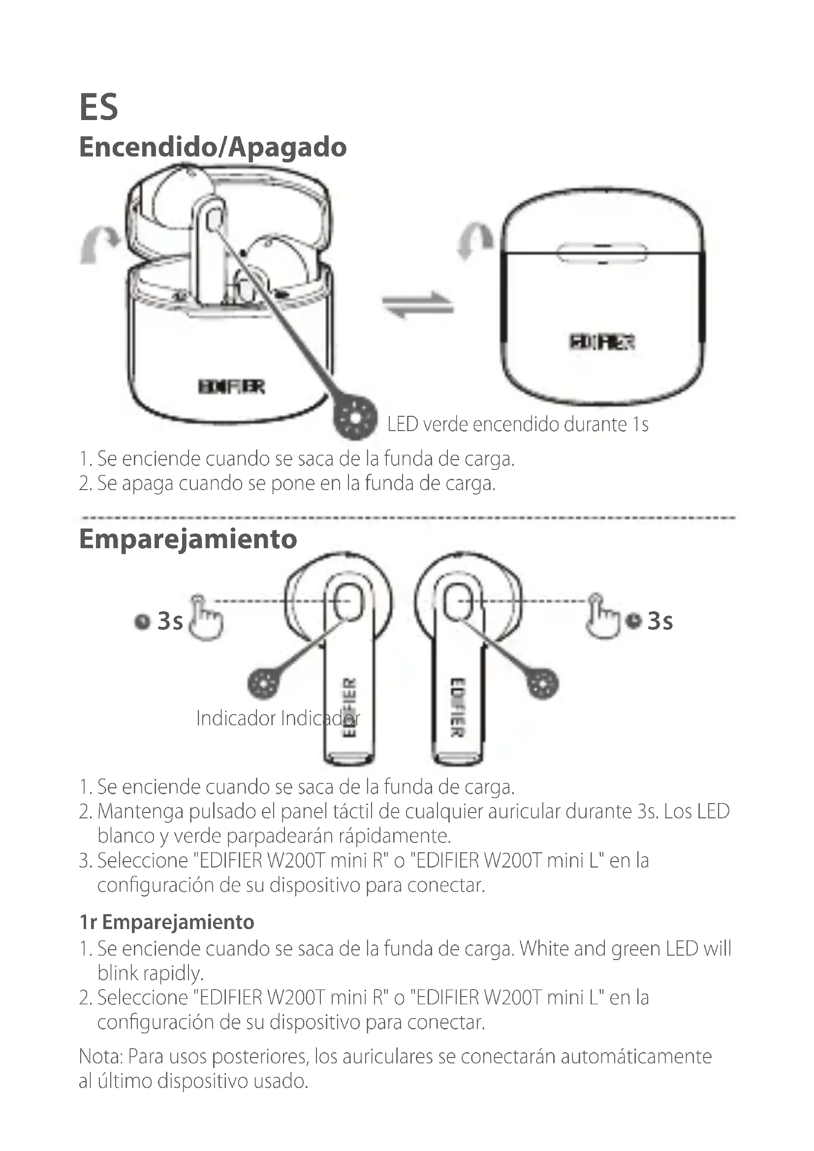 Descarga las instrucciones para tu Tapón de oído en formato PDF gratis! Encuentra tus instrucciones W200T mini - EDIFIER y toma tu dispositivo electrónico nuevamente en la mano. En esta página están publicados todos los documentos necesarios para el uso de su dispositivo. W200T mini de la marca EDIFIER.