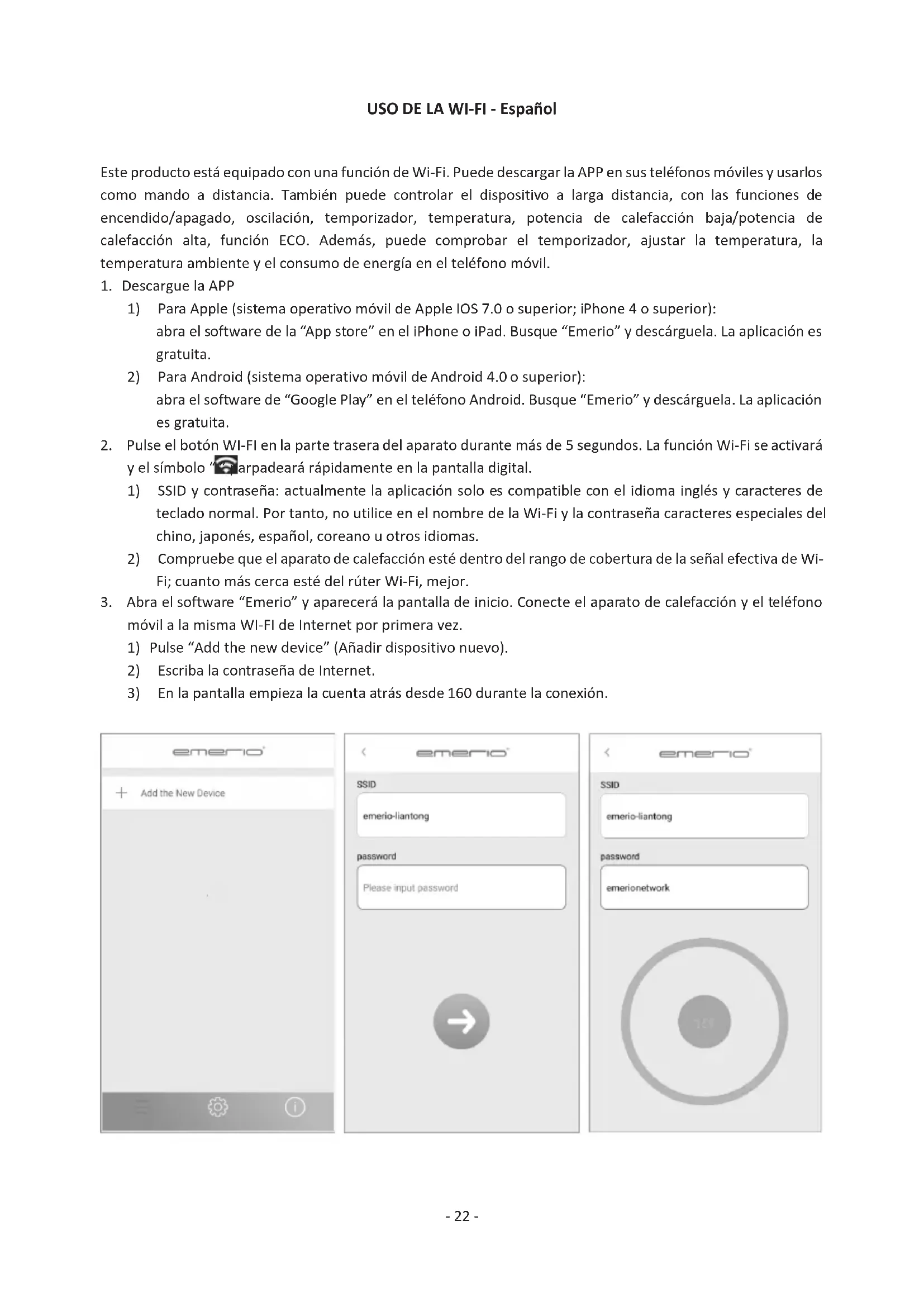 1) SSID y contraseña: actualmente la aplicación solo es compatible con el idioma inglés y caracteres de