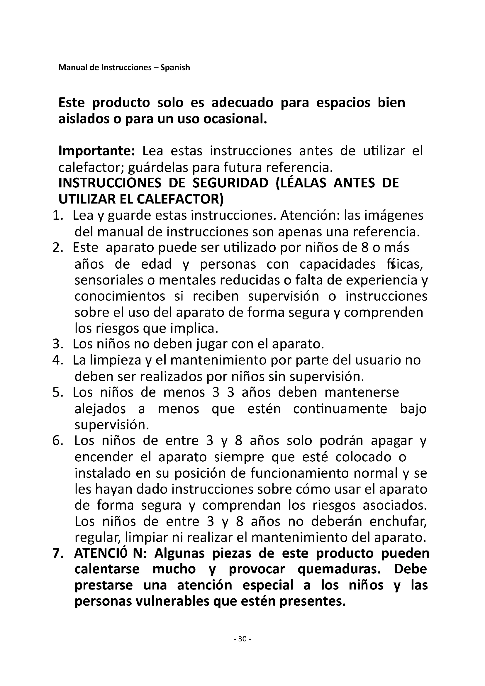 13. Este calefactor no está diseñado para su uso en cuartos
