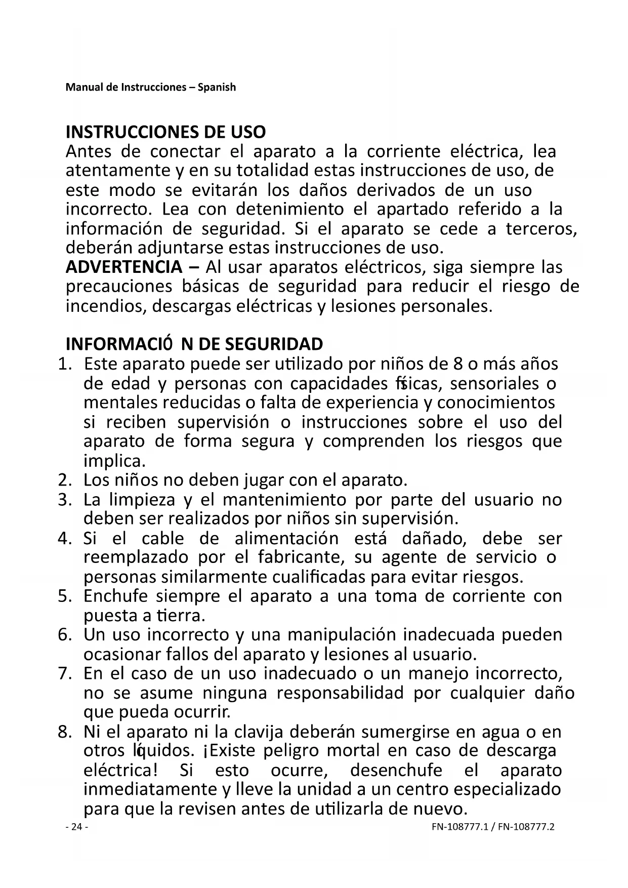 MANUAL DE USUARIO FN108777 Emerio
