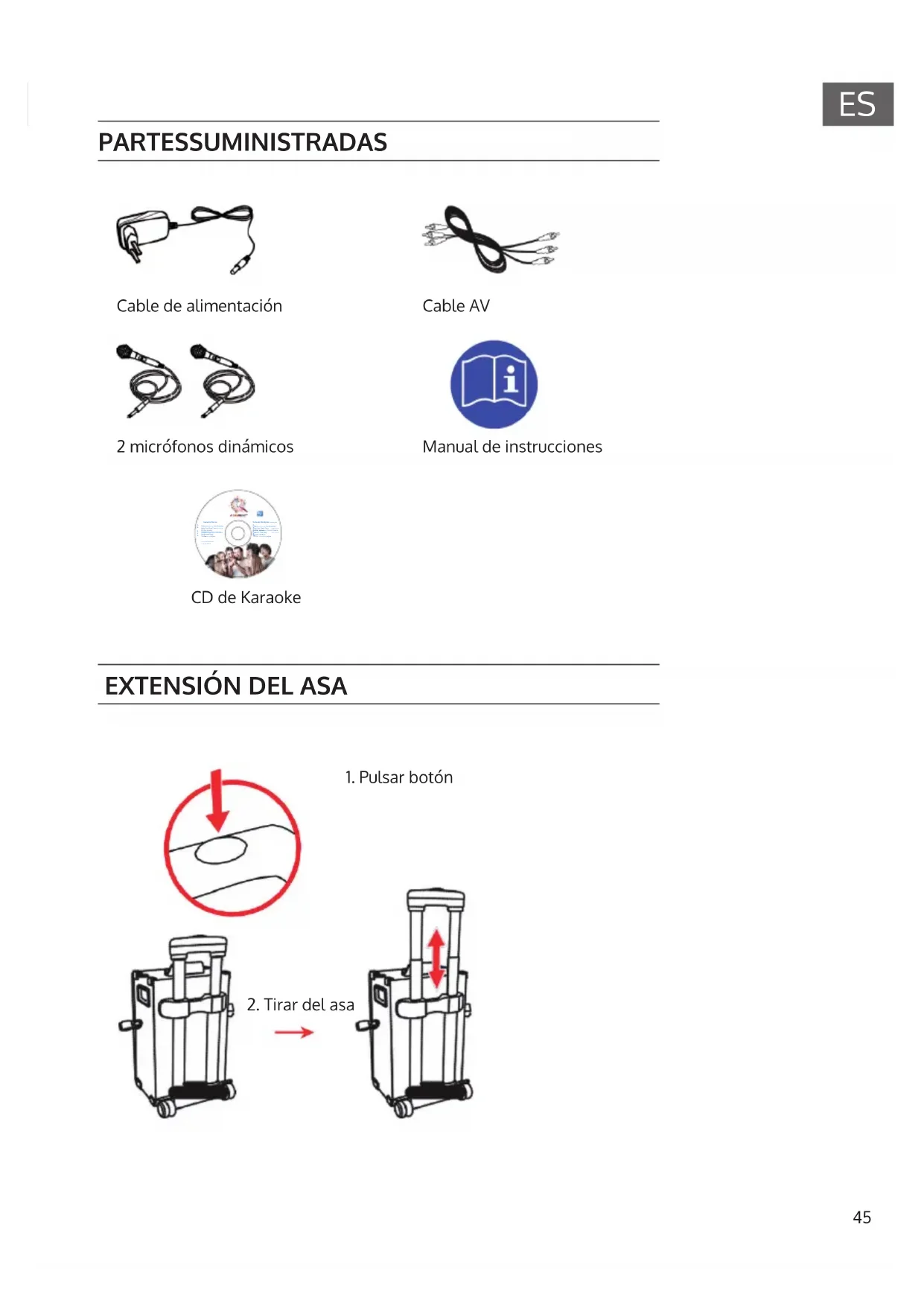 Cable de alimentación 2 micrófonos dinámicos CD de Karaoke Cable AV Manual de instrucciones