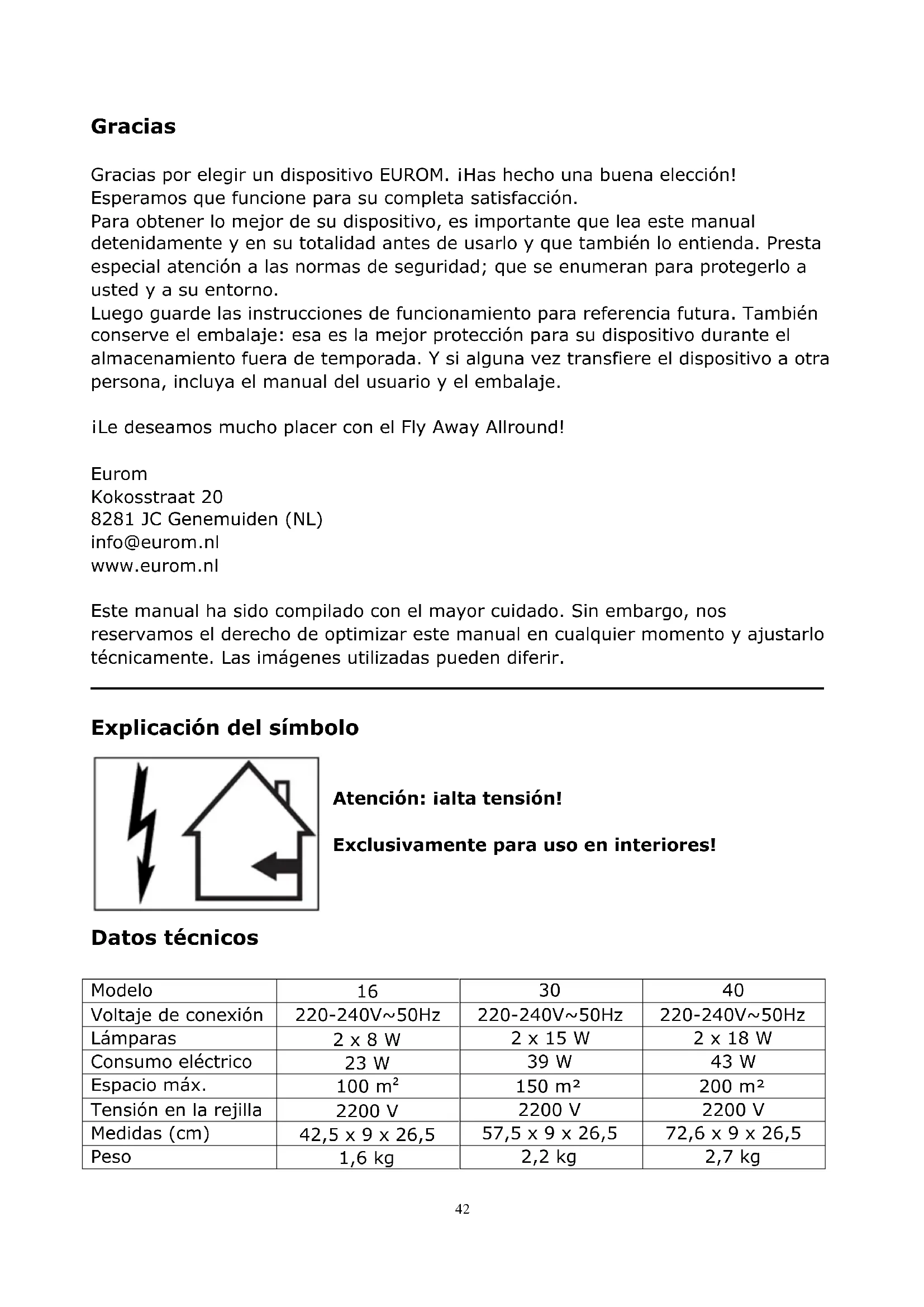 MANUAL DE USUARIO Fly Away 16 Allround Eurom