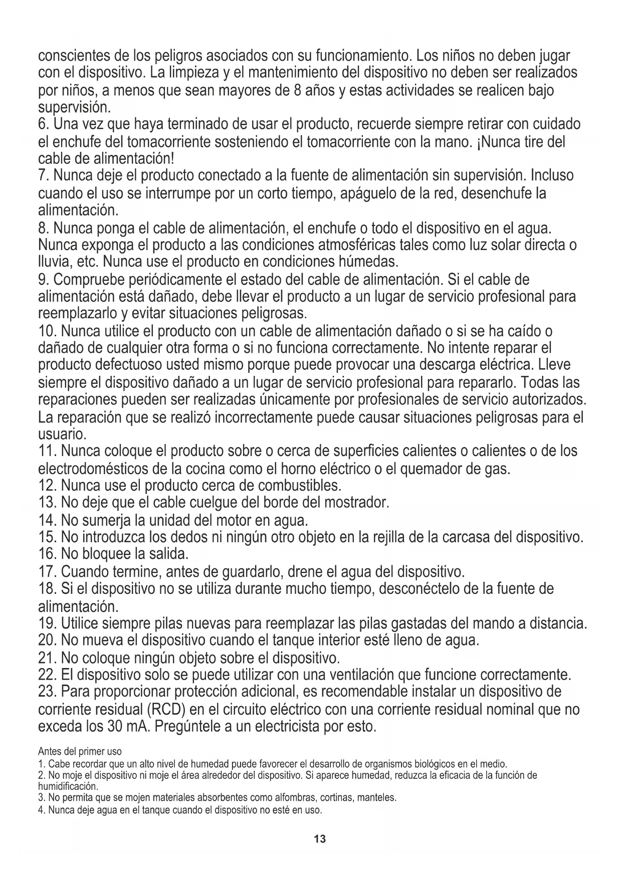 4. Nunca deje agua en el tanque cuando el dispositivo no esté en uso.14