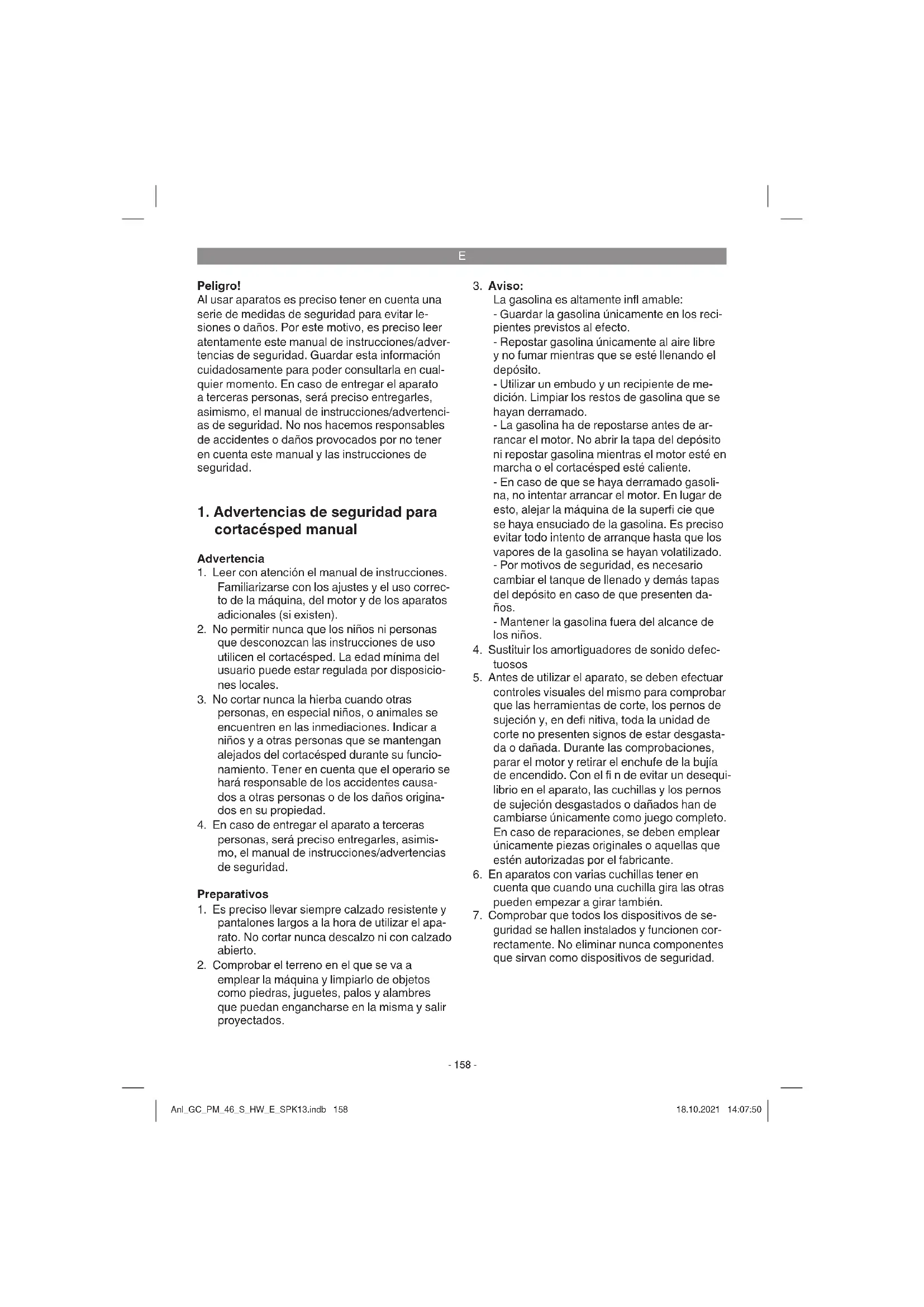 guridad se hallen instalados y funcionen cor- rectamente. No eliminar nunca componentes que sirvan como dispositivos de seguridad. Anl_GC_PM_46_S_HW_E_SPK13.indb 158Anl_GC_PM_46_S_HW_E_SPK13.indb 158 18.10.2021 14:07:5018.10.2021 14:07:50E