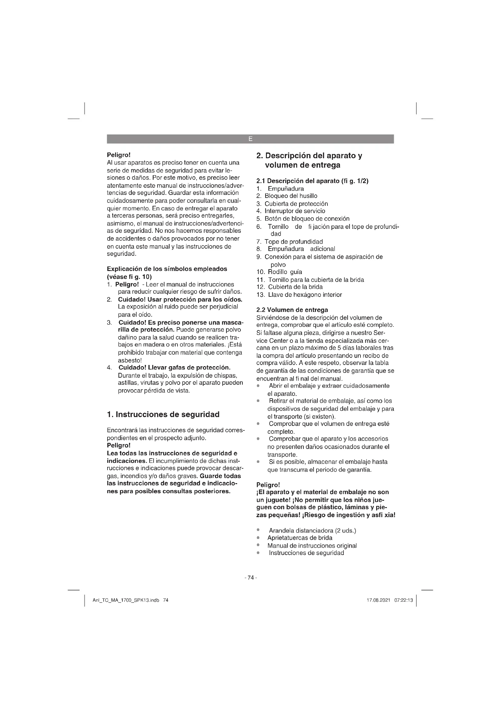nes de las manos y los brazos si el aparato se utiliza durante un largo periodo tiempo, no se sujeta del modo correcto o si no se realiza un mantenimiento adecuado. Anl_TC_MA_1700_SPK13.indb 75Anl_TC_MA_1700_SPK13.indb 75 17.08.2021 07:22:1317.08.2021 07:22:13E