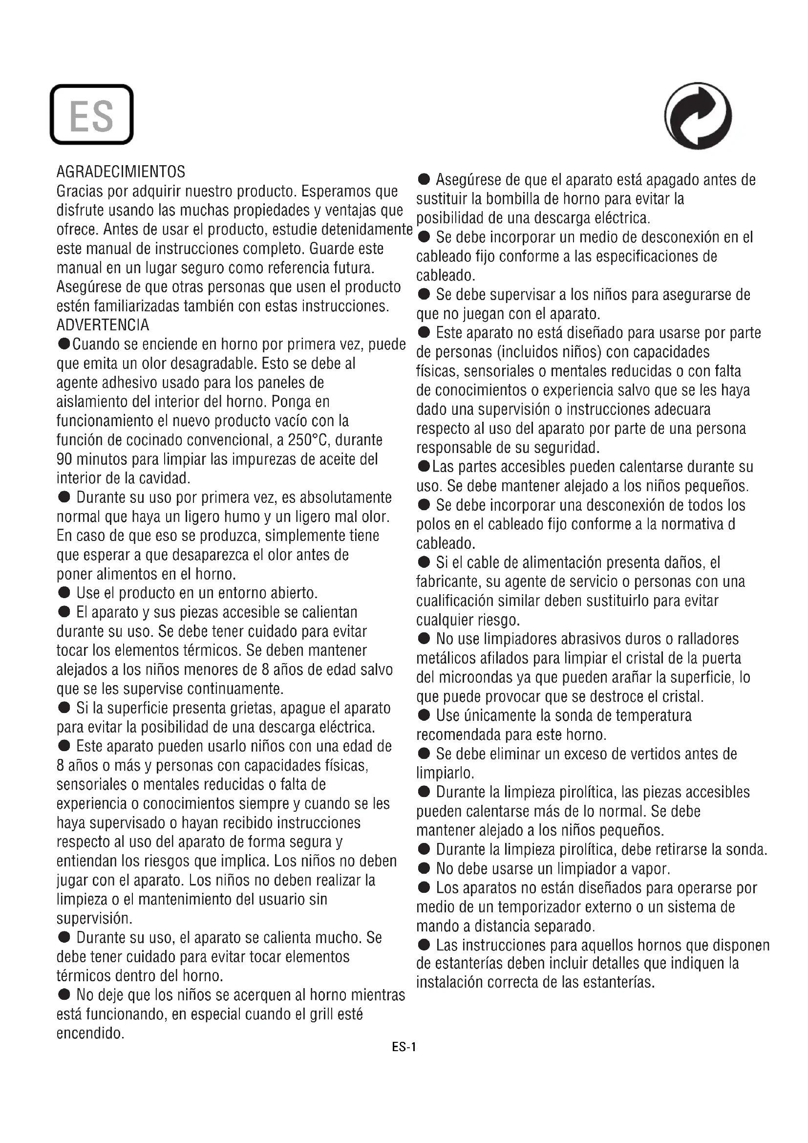 Gracias por adquirir nuestro producto. Esperamos que disfrute usingo las muchas propiedades y ventajas que ofrece. Antes de usar el producto, estudio detenidamente este manual de instrucciones completo. Guarde este manual en un lugar seguro como referencia futura. Asegúrese de que otheras personas que usen el producto estén familiarizadas también con estas instrucciones. ADVERTENCIA