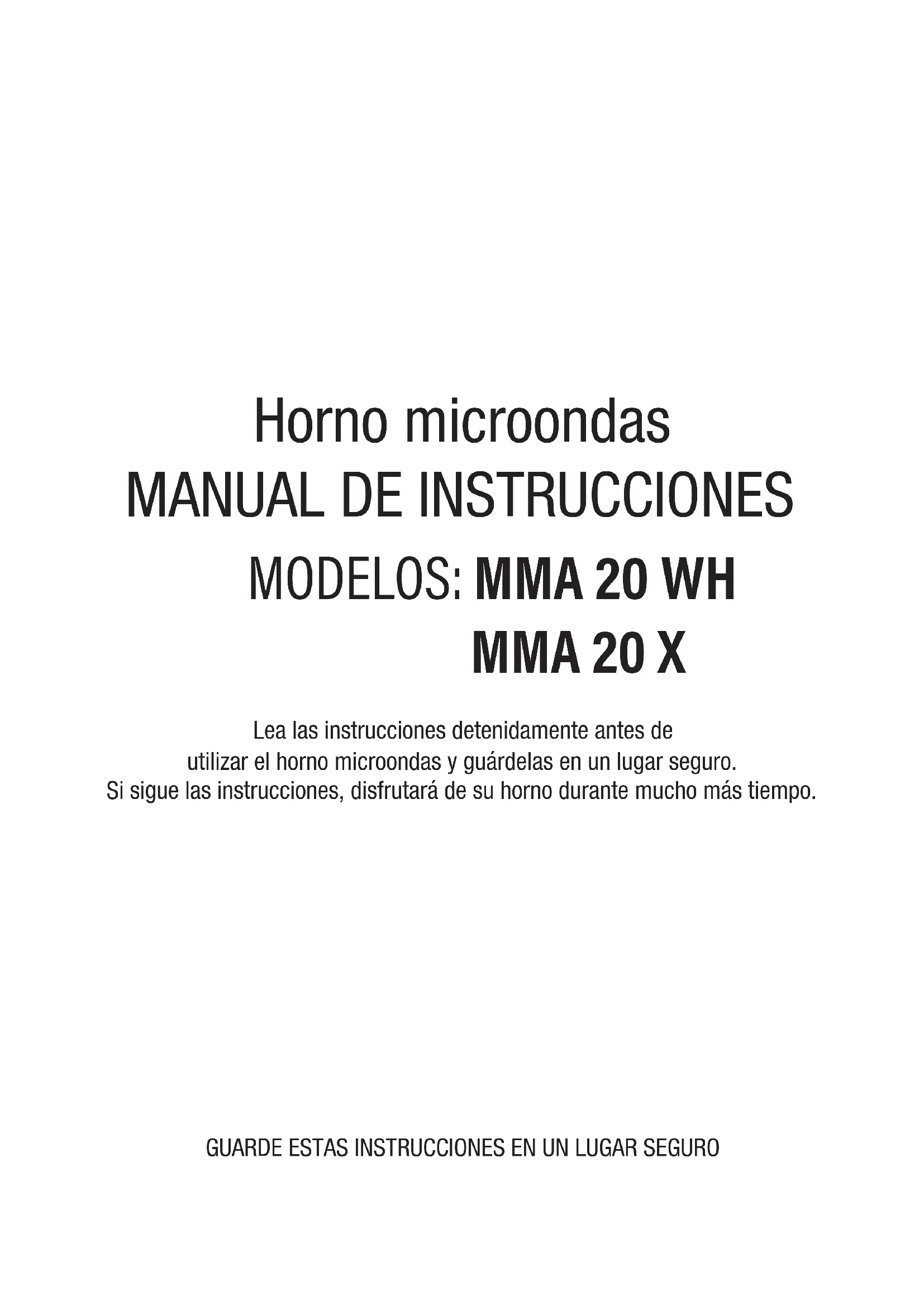 Lea las instrucciones detenidamente antes de utilizar el horno microondas y guárdelas en un lugar seguro. Si sigue las instrucciones, disfrutará de su horno durante mucho más tiempo. GUARDE ESTAS INSTRUCCIONES EN UN LUGAR SEGURO