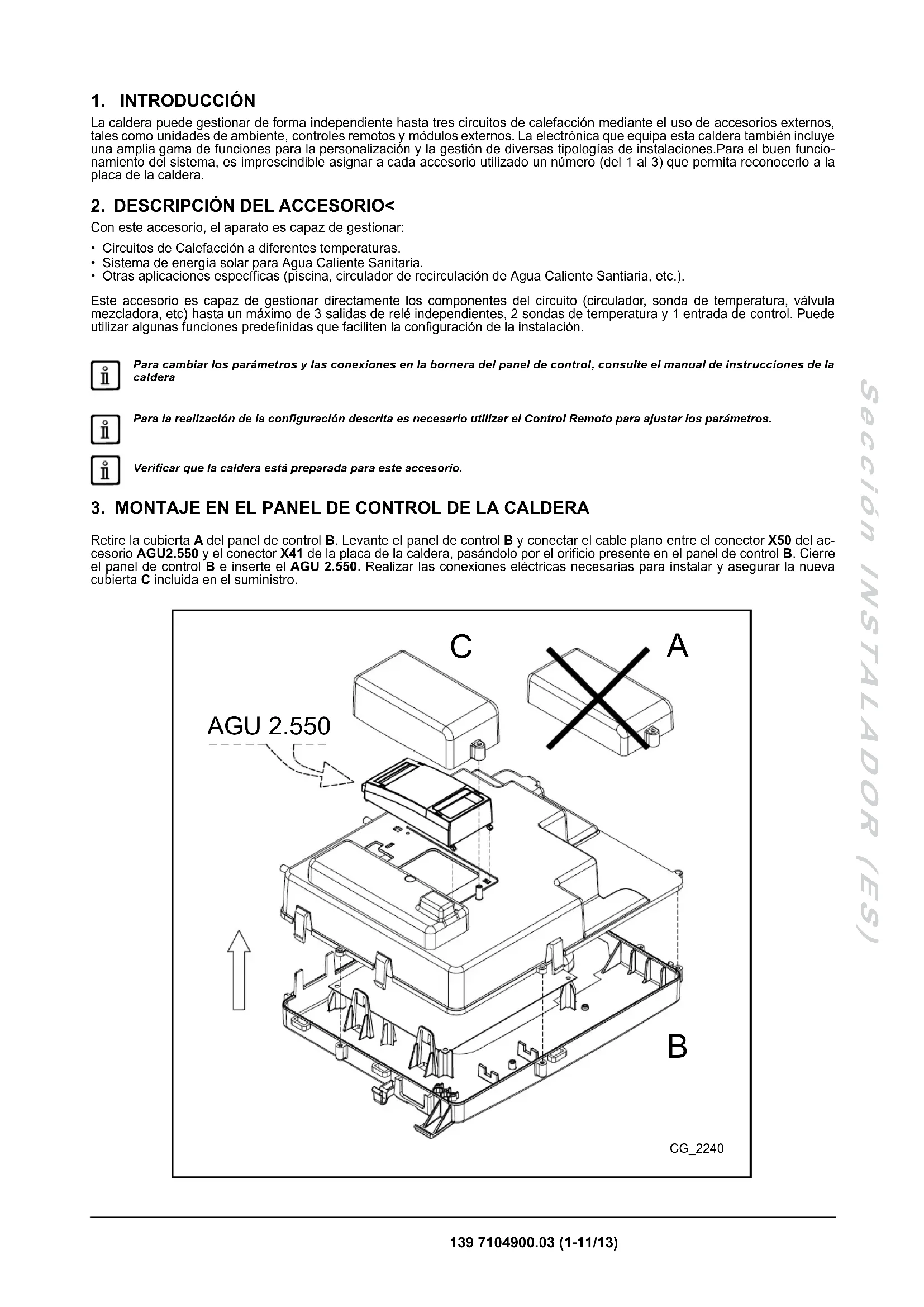 Información que deberá leer con especial cuidado porque son útiles para el buen funcionamiento de la caldera.139 7104900.03 (1-11/13) Sección INSTALADOR (ES)