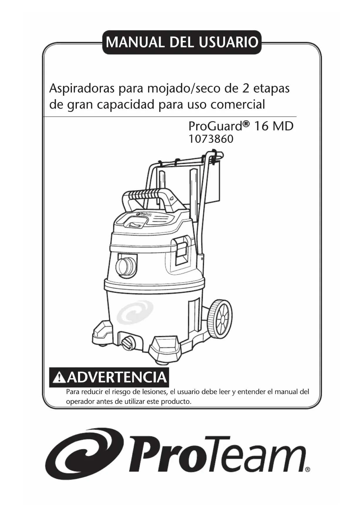ProGuard 16 MD - Aspiradora ProTeam - Manual de uso y guía de instrucciones gratis