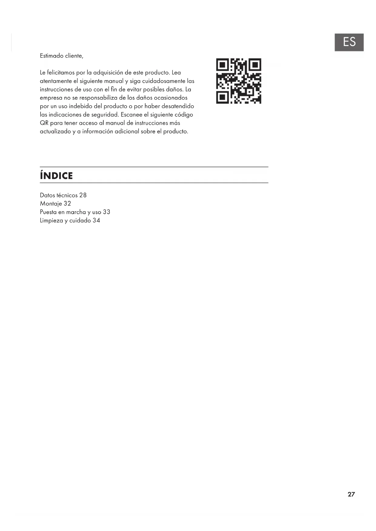 Le felicitamos por la adquisión de este producto. Lea atentamente el siguientes manual y siga cuidadosamente las instrucciones de uso con el fin de evaporar posibles daños. LaEmpresa no se responsabiliza de los daños occasionados por un uso indefinido del producto o por haber desatendido lasindicaciones de sécurité. Escanse elviouso#:QR para tener acceso almanual de instrucciones masactualizzato y a informacion adicular sobre el producto.