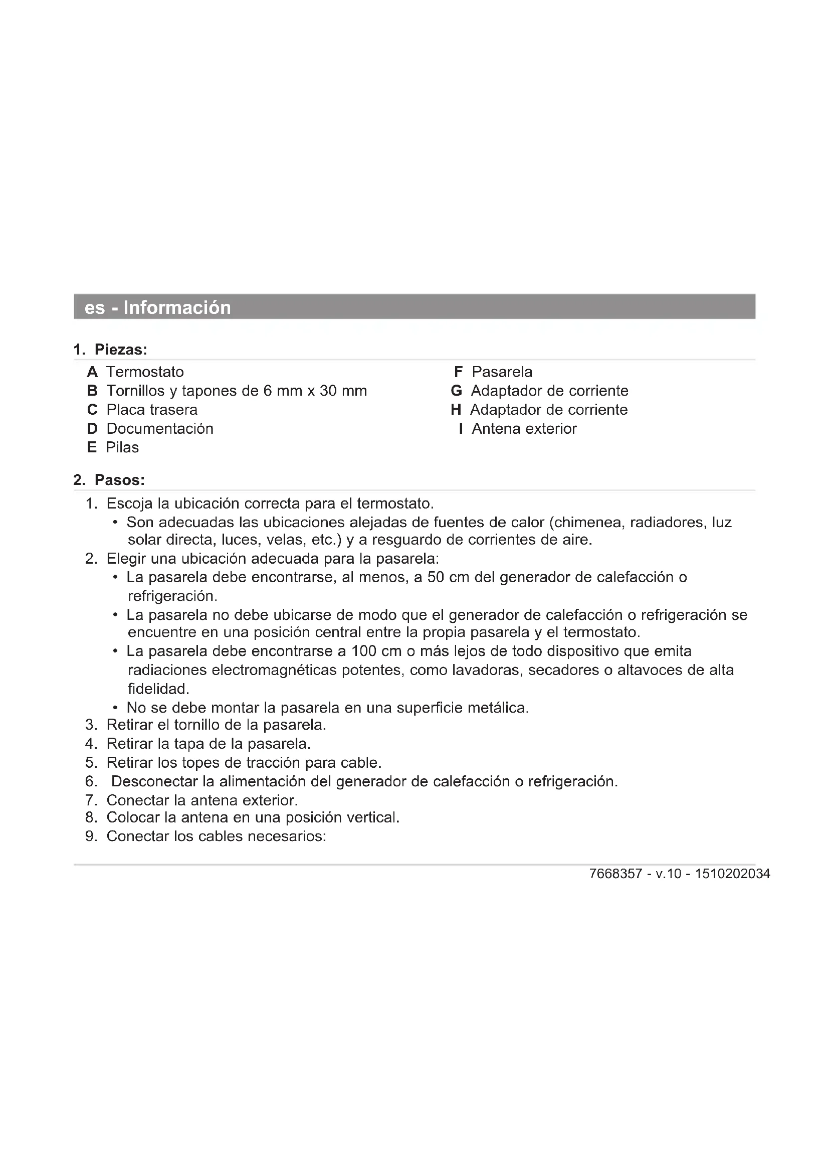 - La pasarela no debe ubicarse de modo que el generador de calefacion o refrigeracion se encuentre en una posicion central entre la propia pasarela y el termostato.