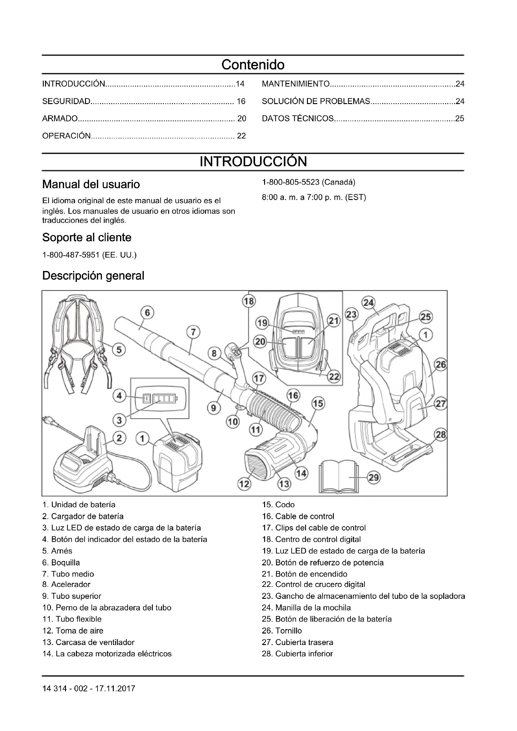INTRODUCCIÓN Manual del usuario El idioma original de este manual de usuario es el inglés. Los manuales de usuario en otros idiomas son traducciones del inglés. Soporte al cliente 1-800-487-5951 (EE. UU.) 1-800-805-5523 (Canadá) 8:00 a. m. a 7:00 p. m. (EST) Descripción general